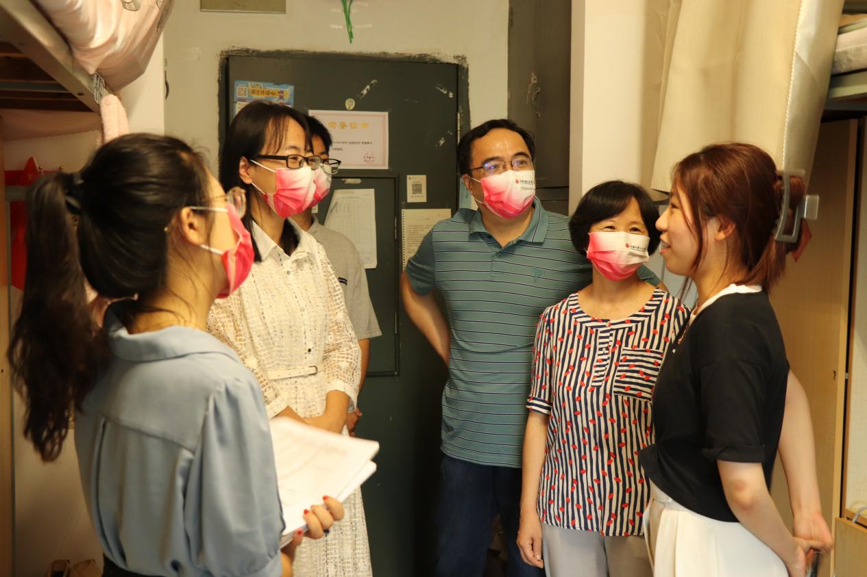 为深入了解新生报到后的学习和生活情况,做好思想动态调研,帮助新生尽快适应大学生活。9月6日下午,Beat365正版唯一官网必一党委书记姚剑英、院长杨晖、党委副书记兼副院长李萍带领新生班主任、辅导员深入走访学生宿舍,关心慰问新生。在走访过程中,老师们与新生亲切交流,特别关心了跨年级、跨专业、跨学院混合住宿的新生情况,细心询问新生入校后的网课学习和生活状态,耐心解答新生遇到的困难,了解新生与副班、“小先生”的对接和交流情...