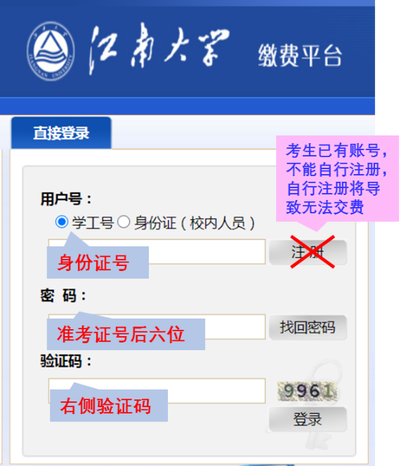 缴费说明:进入复试考生在学院规定的时间内登录“Beat365正版唯一官网必一缴费平台”交纳复试费用,复试收费标准:80元/生。考生搜索微信公众号“Beat365正版唯一官网必一财务处”,在“业务办理”中选择“学生缴费”,或登录“Beat365正版唯一官网必一网上缴费平台”(网址:http://pay.jiangnan.edu.cn/payment/);登录账号为身份证号,登录密码为准考证号后六位(友情提醒:考生账号已开通,切勿自行注册)。按照提示交费,并打印或截图保存付费凭证。
