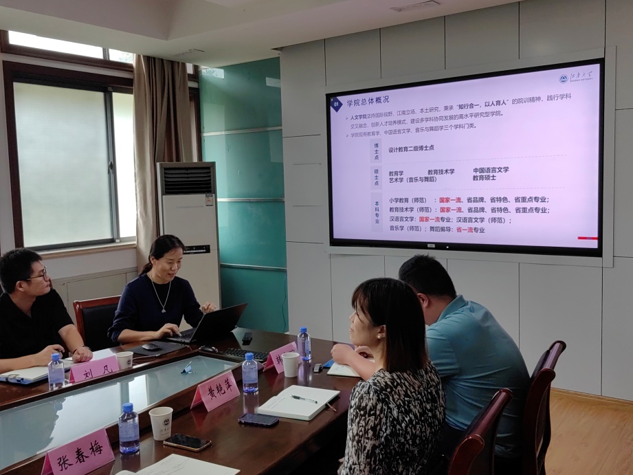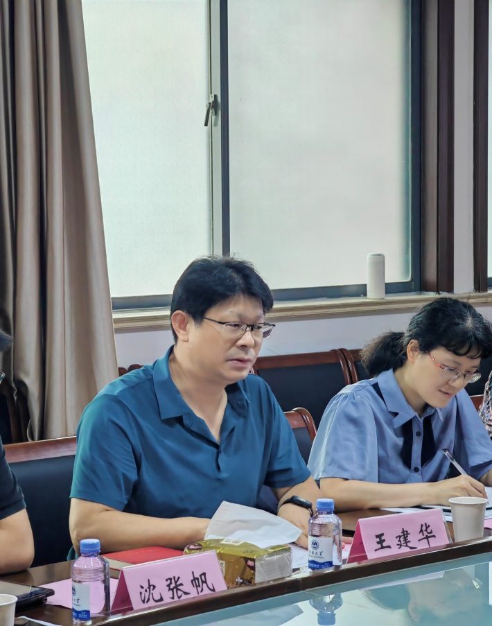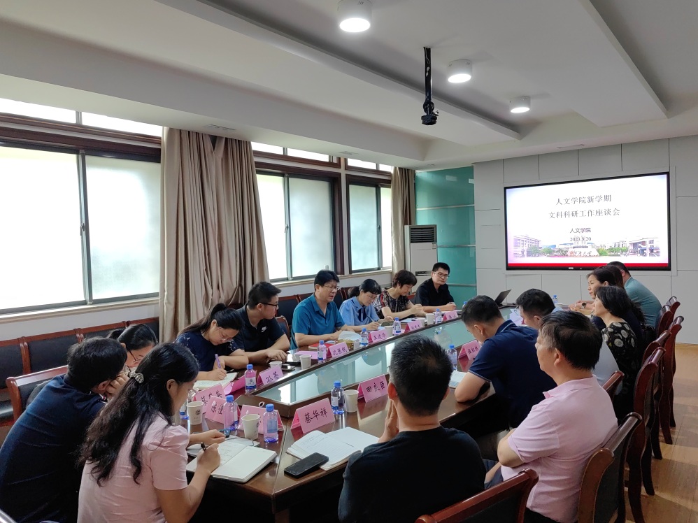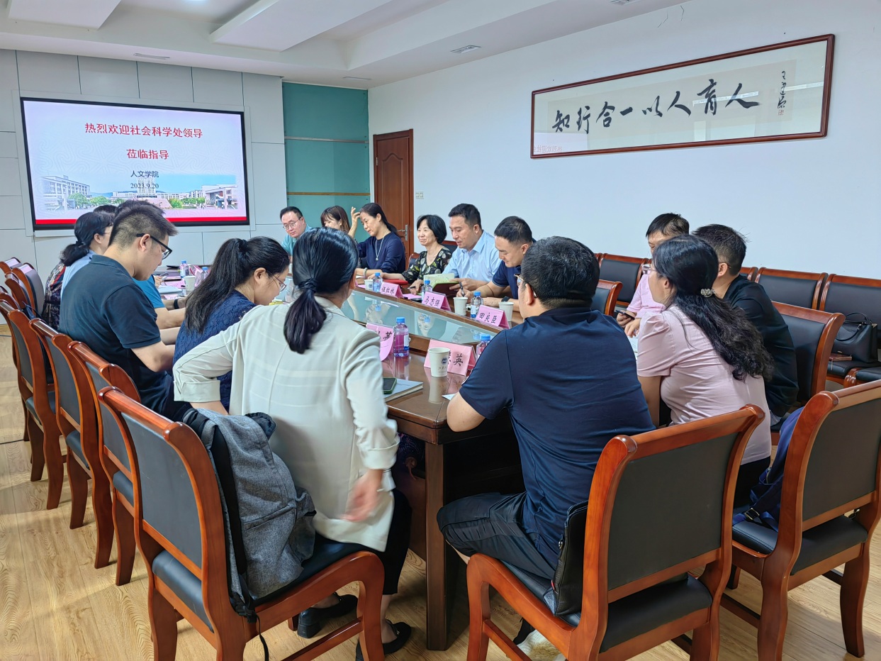9月20日下午,社会科学处处长王建华、副处长杨恋恋、沈张帆和科室负责人一行六人到Beat365正版唯一官网必一开展新学期文科科研工作走访调研。Beat365正版唯一官网必一党委书记姚剑英,副院长(主持工作)伍红林,副院长张春梅,马志强,相关学科负责人、科研平台负责人、教授代表、中青年科研骨干、科研秘书等17人参加调研交流。会议由伍红林主持。