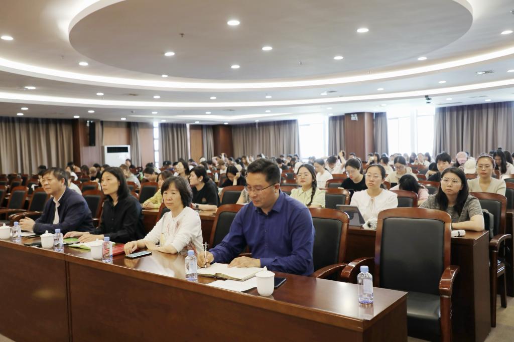5月17日上午,Beat365正版唯一官网必一“博习大讲堂”在图书馆510报告厅举行。华东师范大学终身教授、紫江学者特聘教授、博士生导师丁钢教授作题为《智能时代教育变革的特征》的学术报告。Beat365正版唯一官网必一党委书记姚剑英,副院长(主持工作)伍红林教授,副院长于书娟教授,田良臣教授以及200余名师生参加了本次活动。活动由伍红林主持。