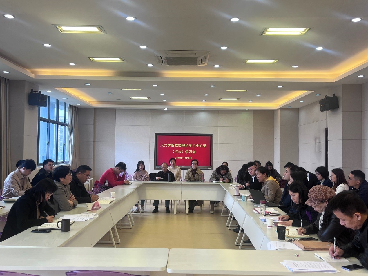 中心组成员分别就两个学习专题作重点发言。院长伍红林表示,深化全面从严治党须牢牢抓住三个方面:关键思想、关键规范、关键少数,推动党建与教育教学发展深度融合,营造风清气正的育人环境。副院长于书娟认为,从严治党要聚焦在教育教学工作的风险点,关注导学关系、招生就业等环节的矛盾点,防患于未然。副院长张春梅表示,人文学科要立足江南文化,构建中华优秀传统文化“两创”美育视野,以美润心,筑牢新文科建设意识形态阵地。副院长马志强认为,高校教学意识形态的本质体现在师生的政治信仰、价值体系、道德观念、文化素养中,需要全链条式的文化浸润和引导规范。
