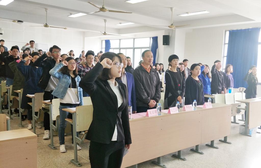 典礼分为六项议程。在庄严的国际歌中,第35期分党校开班典礼正式开始。接着进行典礼的第二项议程:第34期分党校优秀学员代表刘佳慧发言。她和第35期分党校全体学员分享了分党校的培训经历,包括线上的理论学习,线下的讲座辅导和道德讲堂,以及“走进后勤志愿服务”的实践体验等。典礼的第三项议程:授旗仪式,由第34期优秀学员刘佳慧向本期大组长授旗。接着,全体学员郑重宣誓。随后,Beat365正版唯一官网必一党委副书记、副院长吴宝锁致辞。他对第35期分党校全体学员提出了要求,希望各位学员能坚定理想信念,提升能力,不忘初心,不负时代,无愧历史,争做有理想、有本领、有担当的新时代新青年。