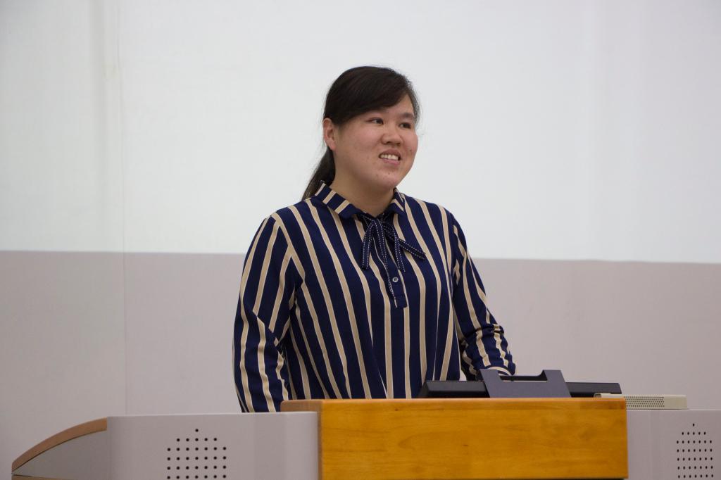 接着小教2014级学生代表张盈盈做了保研经验分享。她跟学弟学妹们介绍了保研的要求、流程及注意事项。她提醒同学们要早规划、早准备、有目标,提升自身综合素质。
