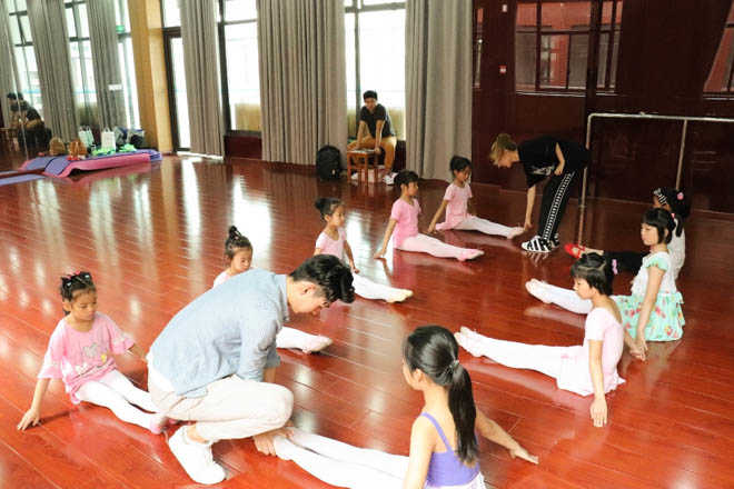 成员在厚桥实验小学开展“舞蹈基础课堂”