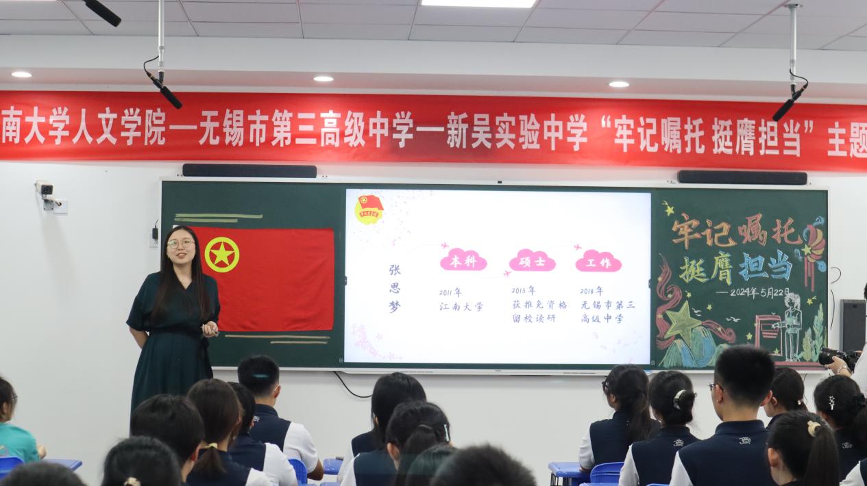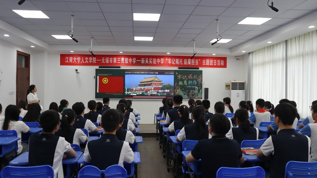 为深入学习习近平总书记五四重要寄语精神,近日,Beat365正版唯一官网必一青年马克思主义者培养工程第六届培训班学员赴无锡市第三高级中学参加“牢记嘱托、挺膺担当”主题团日活动,与无锡市第三高级中学、新吴实验中学的60余名团员代表们共同学习习近平总书记五四青年节对全国广大青年寄语精神,畅谈《习近平与大学生朋友们》读书心得,分享成长经历和感悟。