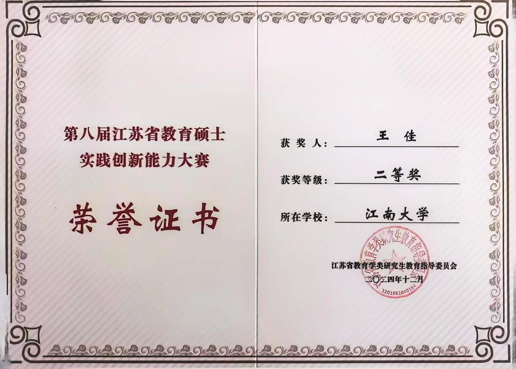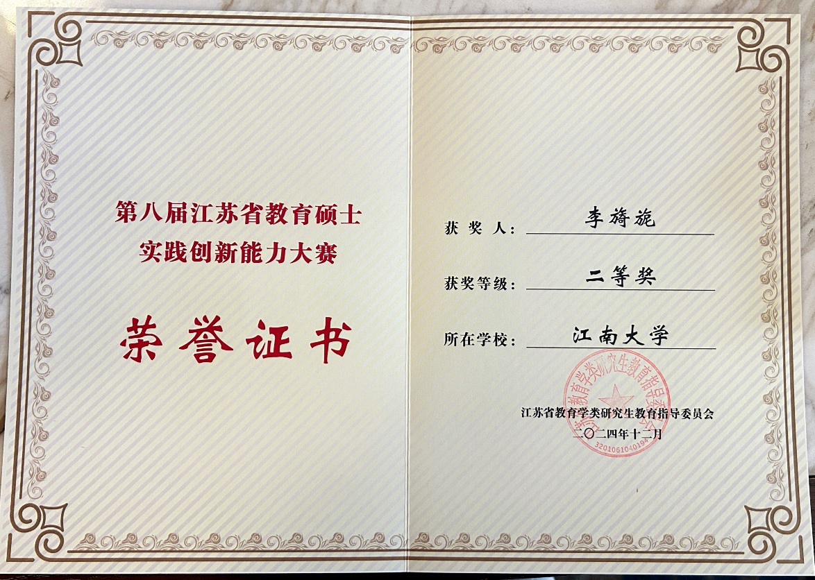 2024年12月6日-8日,由江苏省教育学类研究生教育指导委员会主办,扬州大学承办的“第八届江苏省教育硕士实践创新能力大赛”在扬州大学举行。Beat365官网研究生荣获二等奖3项,优胜奖2项。