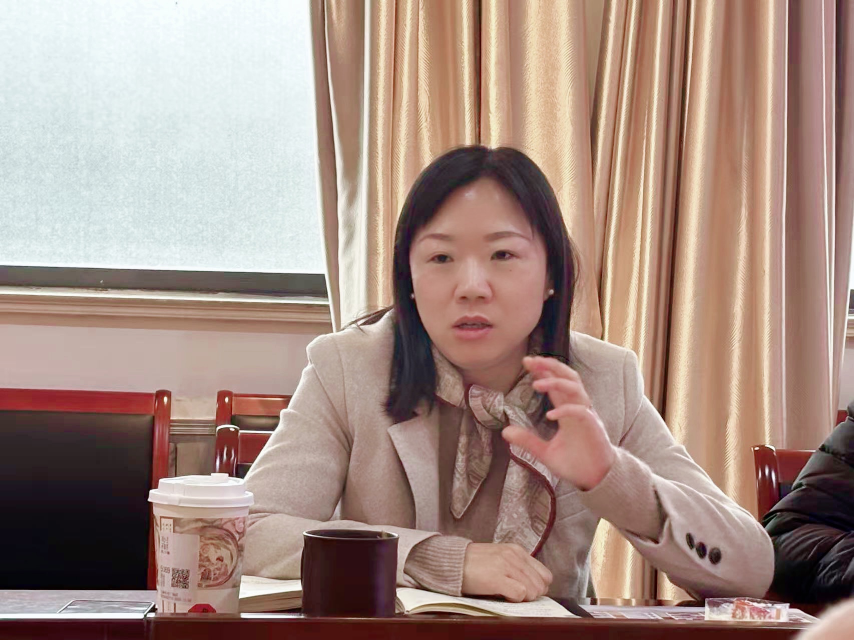 王晖肯定研讨会成效,指出学院学生工作扎实,辅导员在此基础上要结合上位文件、学校规划、学院目标、个人特长寻找突破口,打破传统壁垒,持续推陈出新。她结合学院工作实际,对学生工作提出三点建议:一是要系统推进学生工作,将特色工作品牌化、重点工作精细化、常规工作制度化,善于培养学生骨干,延伸工作触手,持续提升工作执行力;二是要坚守育人初心,不断拓展工作广度,增进工作深度,提升工作温度,让学生工作向下扎根,向上生长;三是要畅通三条育人路径,搭建平台载体、整合校地资源、促进产教融合,培养贴近学生气质、具有学院特色、体现学科特点的具有家国情怀和人文风格的时代新人。