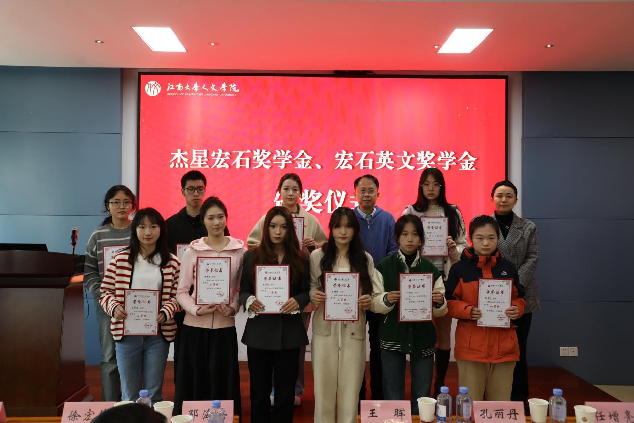 徐璐宣读获奖名单。Beat365正版唯一官网必一校友会秘书长、宏石酒行总经理、上海杰星生物科技有限公司首席品牌运营官徐宏伟,无锡市宿迁商会副会长张海洋、监事长韩荣寨,江苏新思域教育科技集团有限公司总经理王斌分别为获得杰星宏石奖学金、宏石英文奖学金、同心惠美奖学金、新思域国际教育奖教金的师生颁发荣誉证书并合影留念。