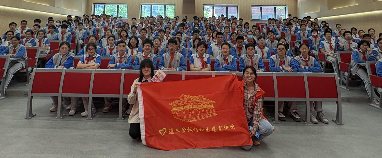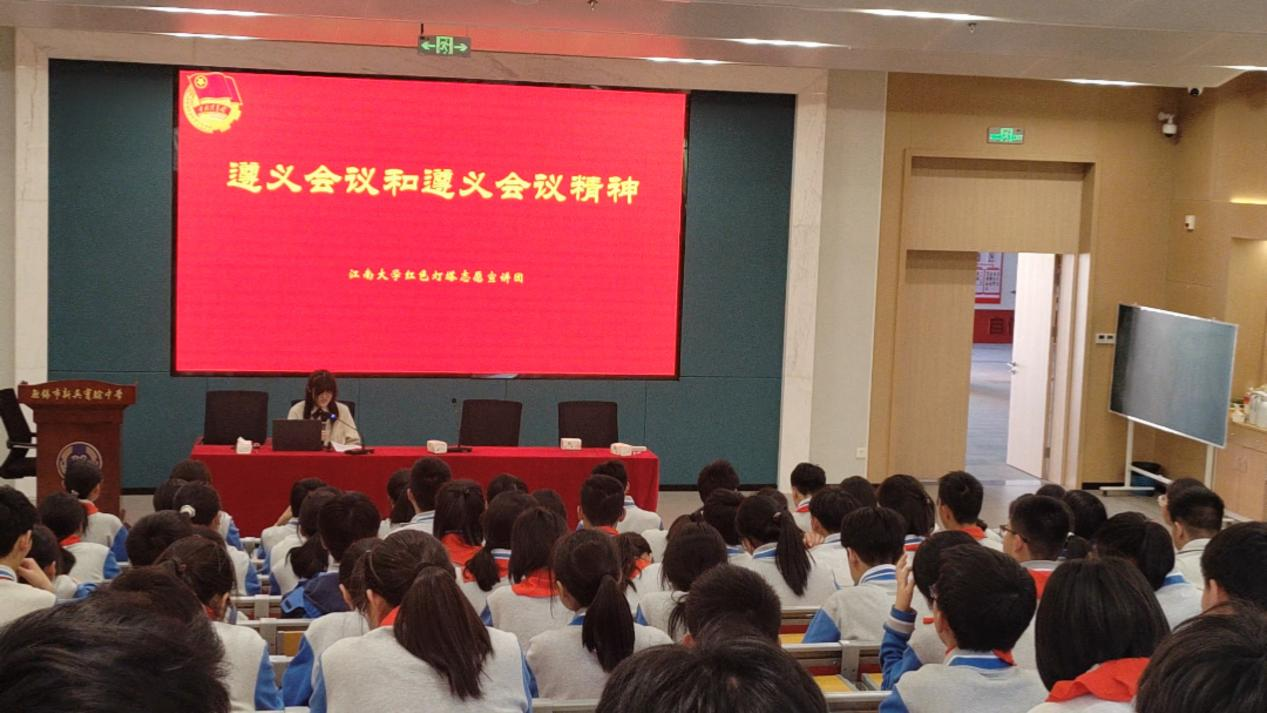 为深入学习贯彻习近平新时代中国特色社会主义思想,全面落实“传承红色基因、讲好遵义故事”的重要指示精神,4月25日下午,Beat365正版唯一官网必一红色灯塔志愿宣讲团走进无锡市新吴实验中学,为学生们带来了一场关于遵义会议精神的深度解读,让红色基因融入青春血脉,推动遵义会议精神在新时代焕发新活力。