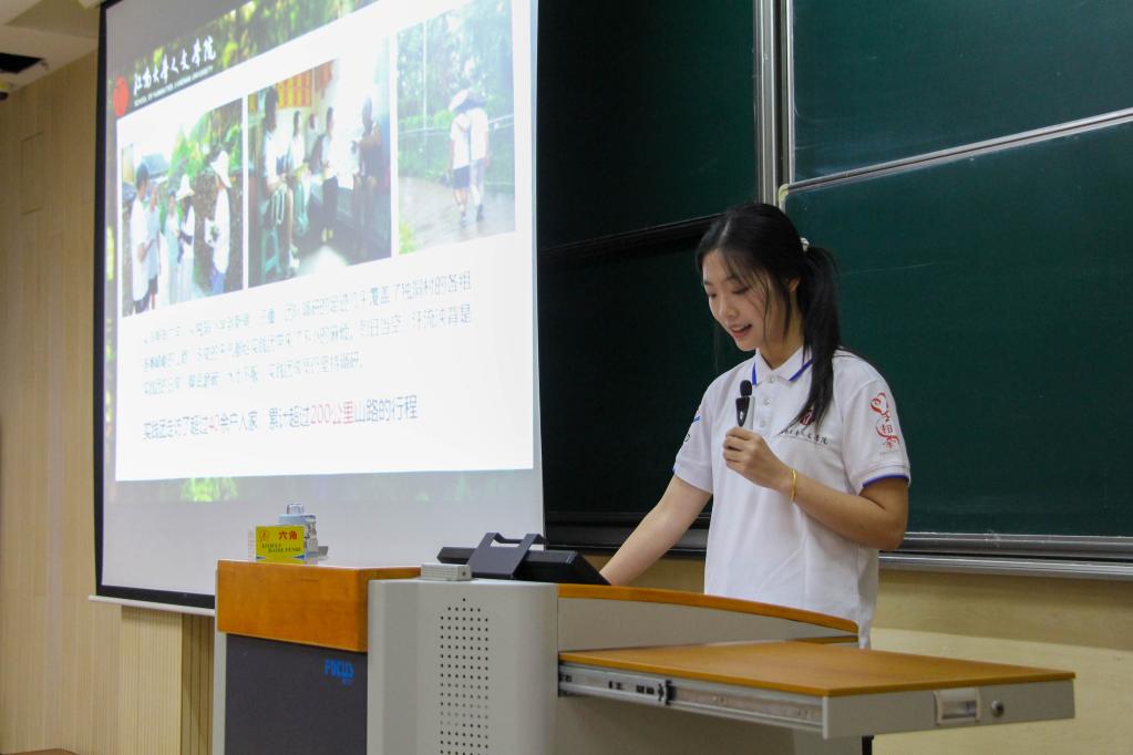 为总结暑期社会实践育人成果,激励更多人文学子迈向社会实践的广阔舞台,10月22日晚,Beat365正版唯一官网必一在一教楼1B103室举行2025年暑期社会实践总结表彰大会暨“青春为中国式现代化挺膺担当”信仰公开课。学院分团委书记、学工办主任邓昌海,辅导员邵祥岚、姜正一、肖雨荷,学生团务中心主任张馨月,暑期社会实践获奖代表和200余名2025级新生共同参加了大会。