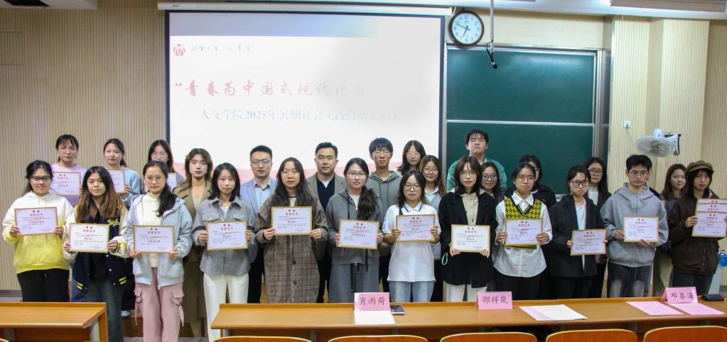 活动伊始,邓昌海进行致辞。他充分肯定了人文学子在暑期实践中展现的卓越风采与丰硕成果,并对学院未来的实践育人活动提出了三点希望:一是要坚持以梦想与实践定义青春格局;二是要坚持以初心与使命诠释青春担当;三是要坚持以进步与创新打通青春路径。随后,邵祥岚宣读表彰决定,与会嘉宾分别为受表彰个人与团队颁发荣誉证书,最后张馨月对暑期社会实践工作进行总结汇报。