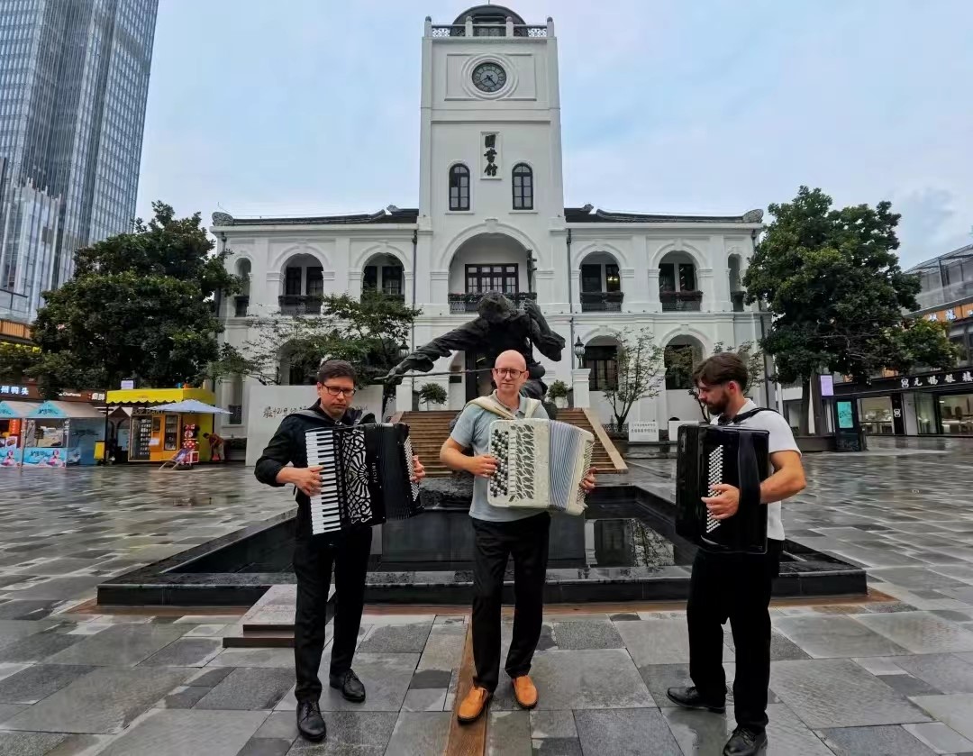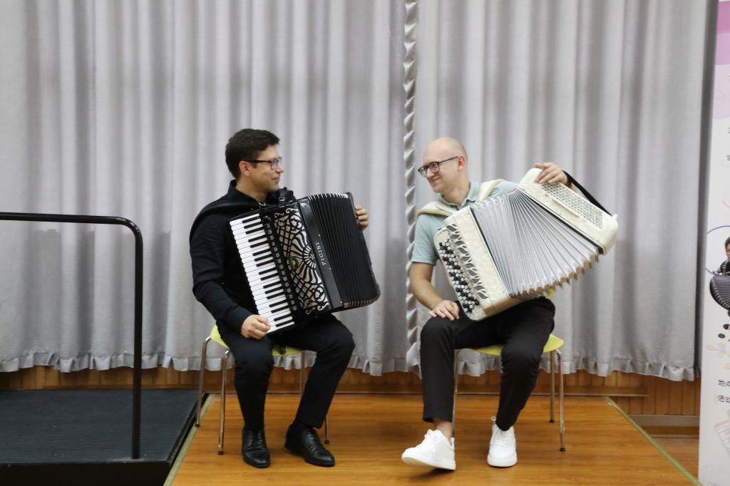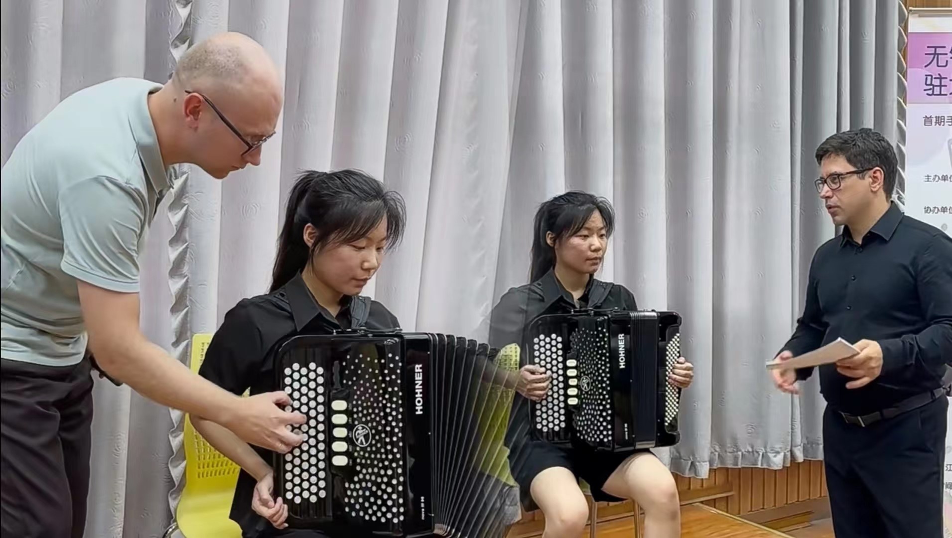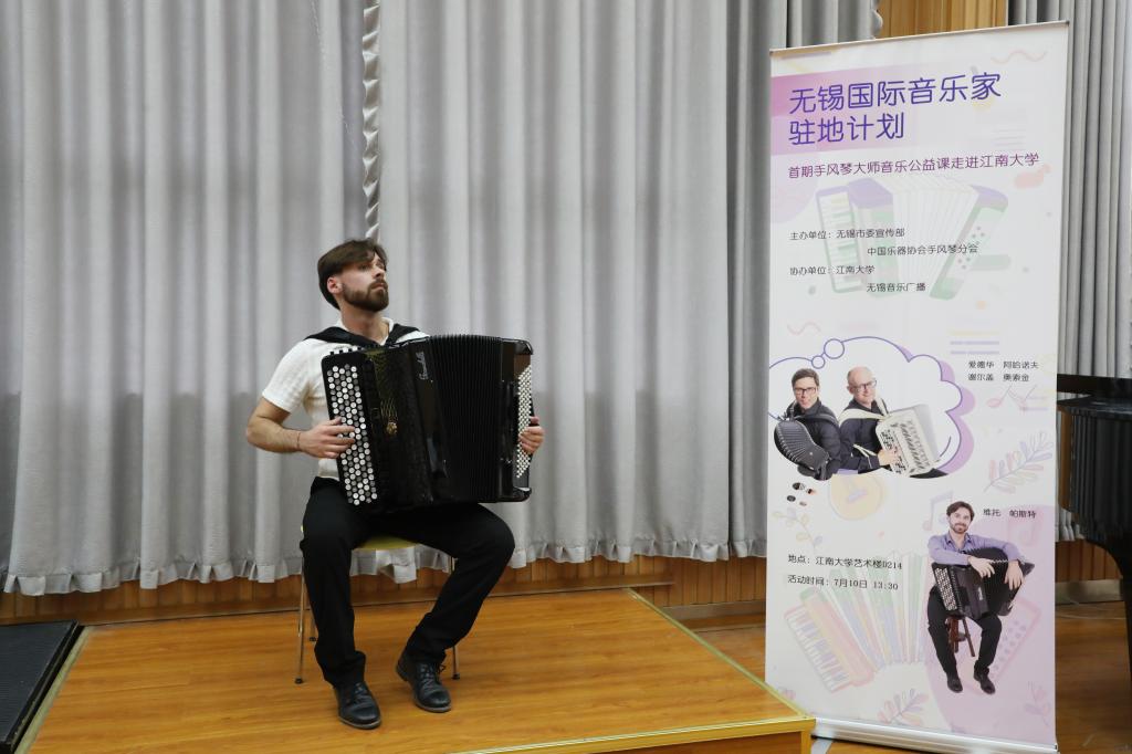 2024年7月10日下午13:30,无锡市委宣传部与中国乐器协会手风琴分会联合主办的无锡国际音乐家驻地计划——首期手风琴大师音乐公益课于Beat365正版唯一官网必一艺术楼D214成功举行。本次活动由Beat365正版唯一官网必一承办,特邀俄罗斯青年手风琴演奏家、作曲家爱德华•阿哈诺夫,莫斯科国立施尼特凯音乐学院教授谢尔盖•奥索金,以及葡萄牙青年才俊维托•帕斯特三位大师,共同为师生呈现了一场精彩绝伦的艺术展演与手风琴大师课。本次活动由Beat365正版唯一官网必一副院长王芳教授主持,中国音协手风琴学会副秘书长、上海师范大学音乐学院王从余教授亲临现场,与Beat365正版唯一官网必一音乐系50余名师生共同参与。