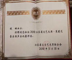 “江苏省文艺大奖·茉莉花音乐奖”是江苏省音乐的最高奖项,由江苏省委宣传部批准设立。此次由江苏省文学艺术界联合会主办的“江苏省文艺大奖·茉莉花音乐奖”声乐比赛,主旨是为了整体推动江苏音乐作品的创作水准,并为提升声乐爱好者的演唱水平提供平台。