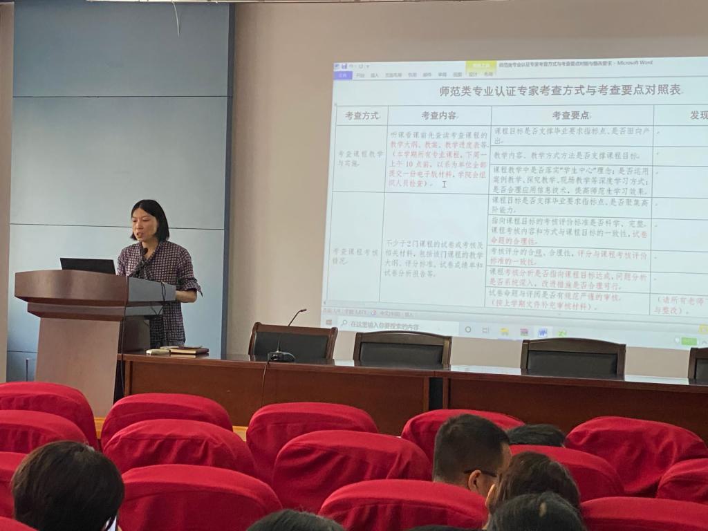 会上,于书娟首先详细介绍了“师范类专业认证专家考查方式与考查要点”,并对其中的每项工作提出了具体要求。同时还对专家进校考察工作方案进行了详细的部署,进一步明确各小组的负责人、工作内容和时间节点。她强调,工作组成员要统一思想,积极主动作为,各分工小组必须将各项工作尽快落实到人,务必保证各项工作顺利完成。