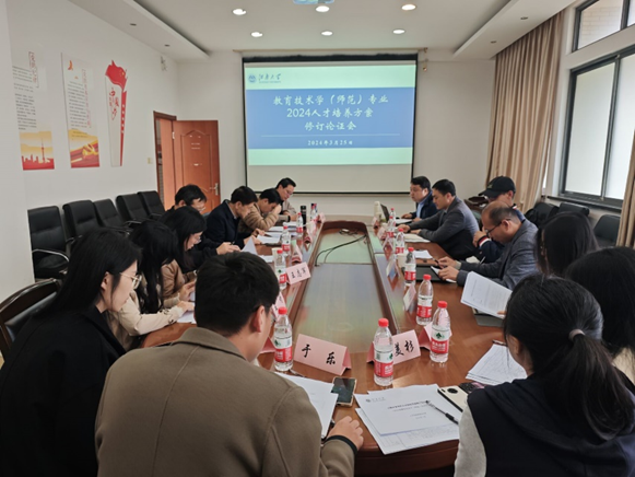 教育技术学专业聘请教育部教育技术学教指委副主任陈明选教授、教育部信息科技课程标准研制组成员华东师范大学李锋教授、无锡市教育科学研究院信息技术教研员史弘文老师,以及02级校友无锡市新城中学朱晓胜副校长、08级校友无锡市金桥双语学校初中部教研组长陈心仪老师和11级校友Beat365正版唯一官网必一宣传部于乐老师等十人组成论证小组。Beat365正版唯一官网必一副院长马志强参加了会议,会议由教育技术系主任刘向永主持。