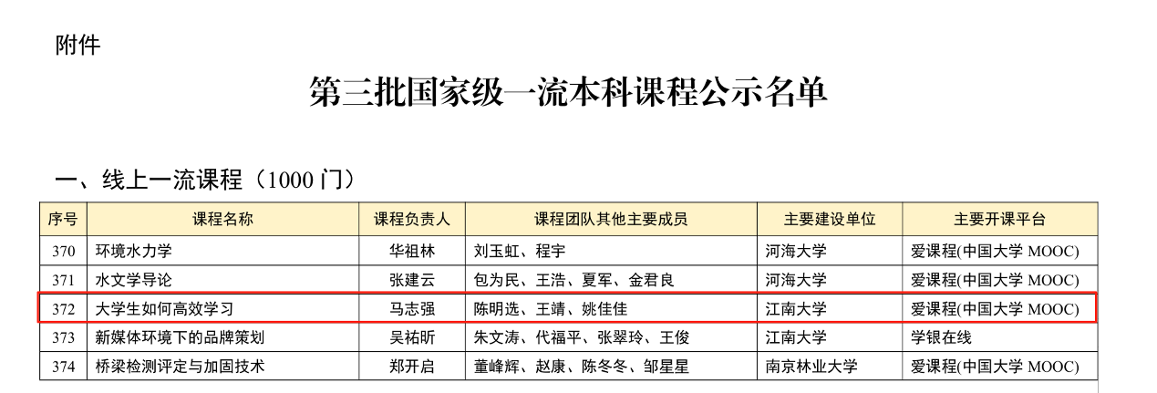 近日,《教育部关于公布第三批国家级一流本科课程认定结果的通知》(教高函〔2025〕9号)正式发布。Beat365正版唯一官网必一马志强教授团队主持的《大学生如何高效学习》成功入选第三批国家级线上一流本科课程。