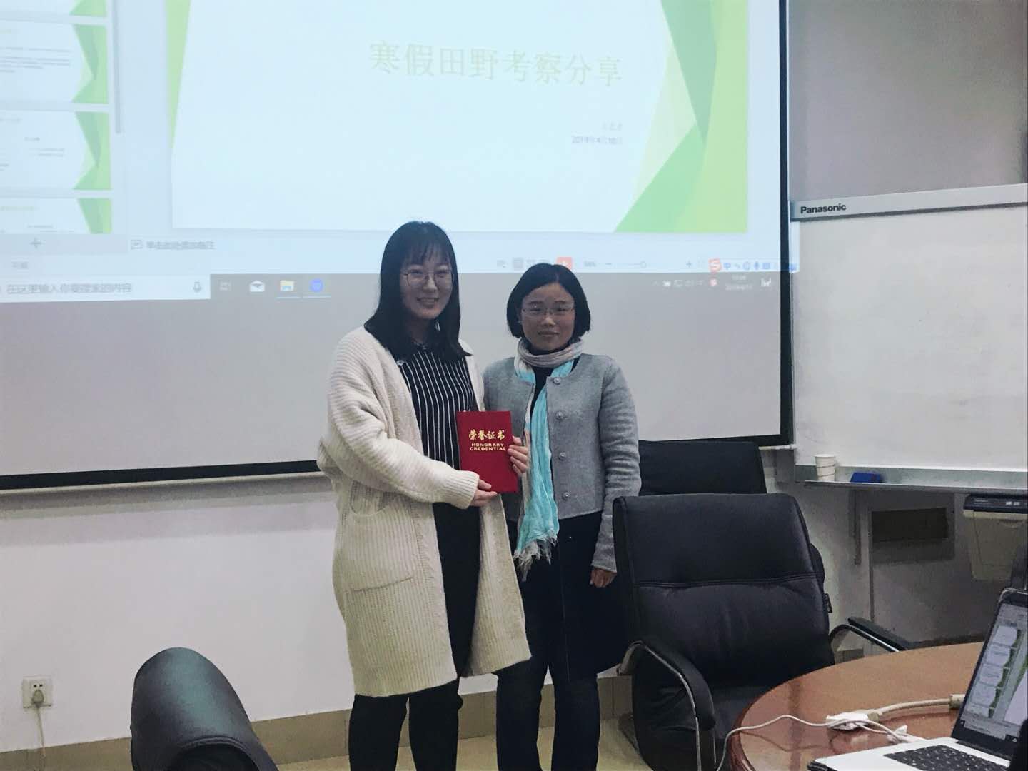 经过现场同学投票评选,本次湖畔杏坛现教育学专业分论坛中,杨天同学获得了“优秀主讲人”的荣誉称号,杜芳芳老师为其颁发证书。湖畔论坛的积极举办为教育系学生提供了一个学术交流的平台,不同领域、不同方向的研究也帮助Beat365官网学生开阔了学术研究的视野、丰富各位同学的研究思想与研究思路。