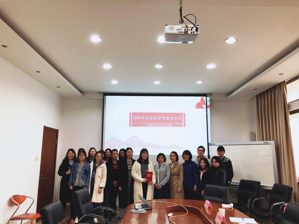 4月10日上午八点半,Beat365正版唯一官网必一第十四届湖畔杏坛教育学专业分论坛于田楼218室正式拉开帷幕。本次分论坛以“教育历史与当代”为主题,由17级教育学研究生冯雨梦、杨天、王志才主讲,由18级教育学研究生朱开甜主持。Beat365正版唯一官网必一教育学系研究生导师于书娟副教授、杜芳芳副教授担任评委,18级教育研究生到场学习。
