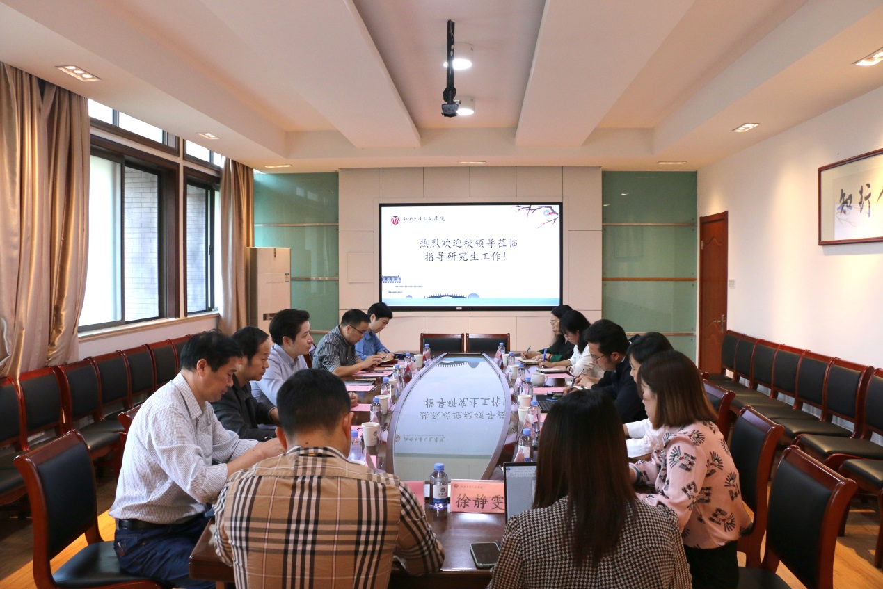 10月19日上午,校党委常委、副校长马鑫,校党委常委、副校长倪松涛,党委研究生工作部部长、研究生院院长吴小俊,研究生院副院长潘如如、姚文生,以及研究生工作部王维懿一行6人赴Beat365正版唯一官网必一调研研究生教育管理工作。Beat365正版唯一官网必一党委书记姚剑英,副院长(主持工作)伍红林,党委副书记、副院长李萍,副院长于书娟、王芳、研究生秘书、研究生辅导员参与座谈。会议由吴小俊主持。