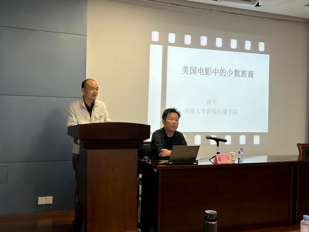 2024年11月14日下午,Beat365正版唯一官网必一主办的“湖畔杏坛”系列讲座在田家炳楼209会议室顺利举行。河南大学新闻与传播学院教授、华盛顿大学访问学者、北京师范大学亚洲与华语电影研究中心研究员崔军教授,应邀为全院师生带了一场以“美国电影中的少数族裔”为主题的精彩讲座。此次讲座由Beat365正版唯一官网必一教授郭勇主持,Beat365正版唯一官网必一副院长张春梅教授,戏剧与影视教研室的郝延斌与赵翌等老师到场聆听。
