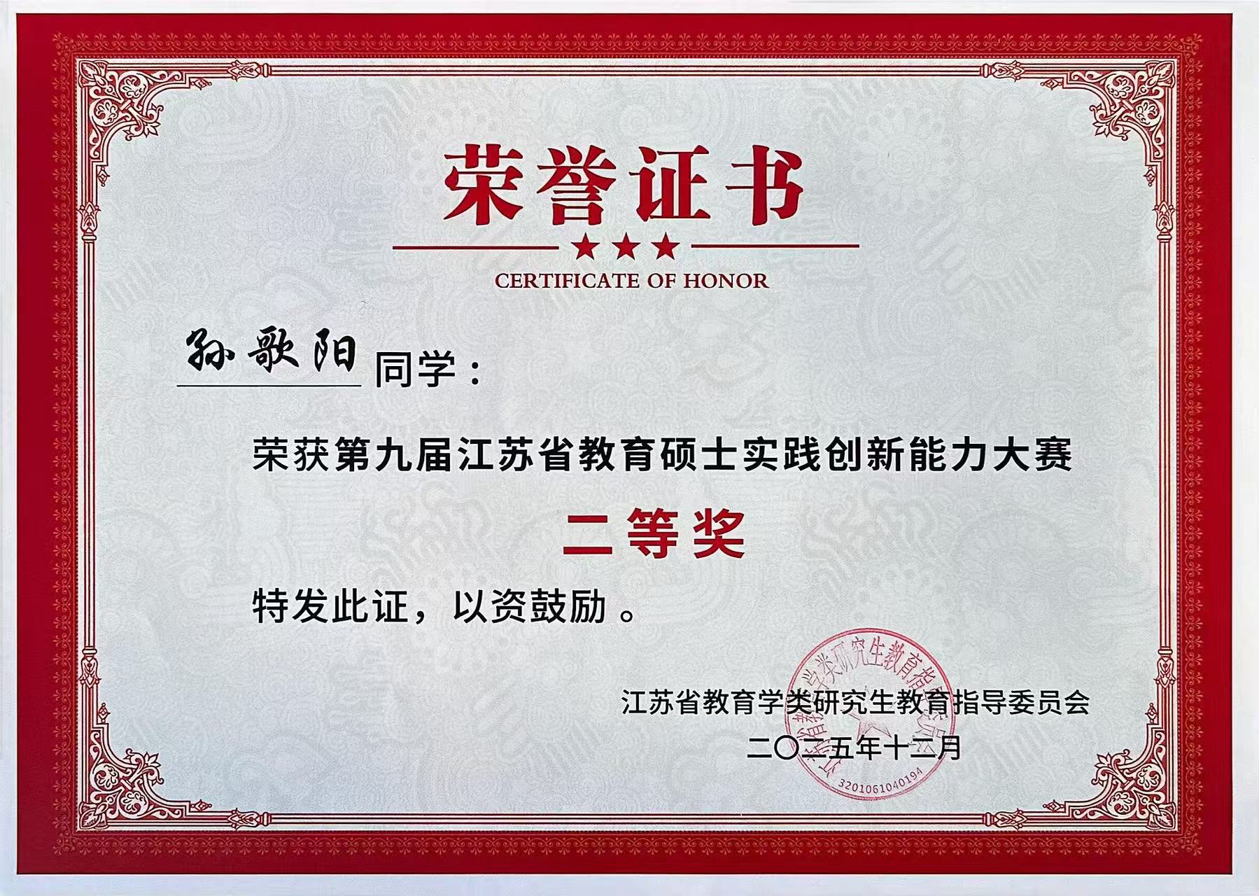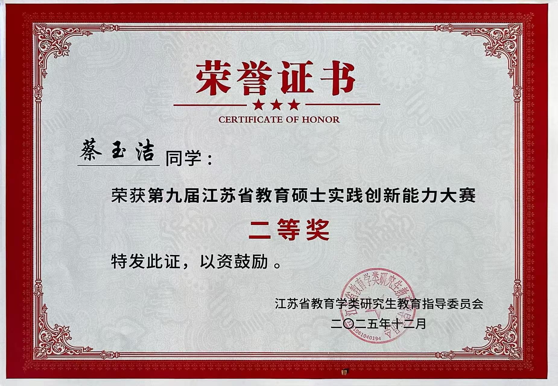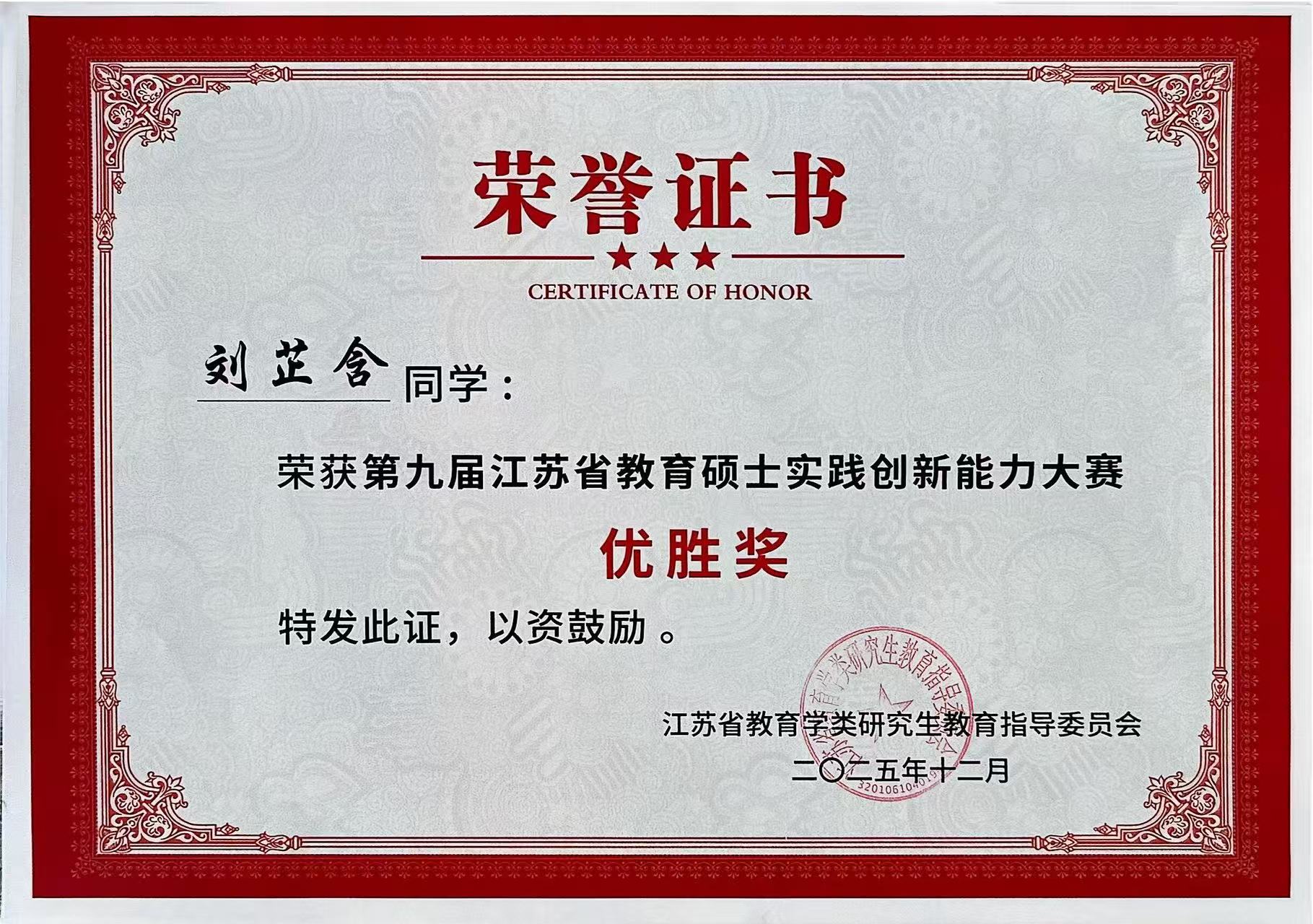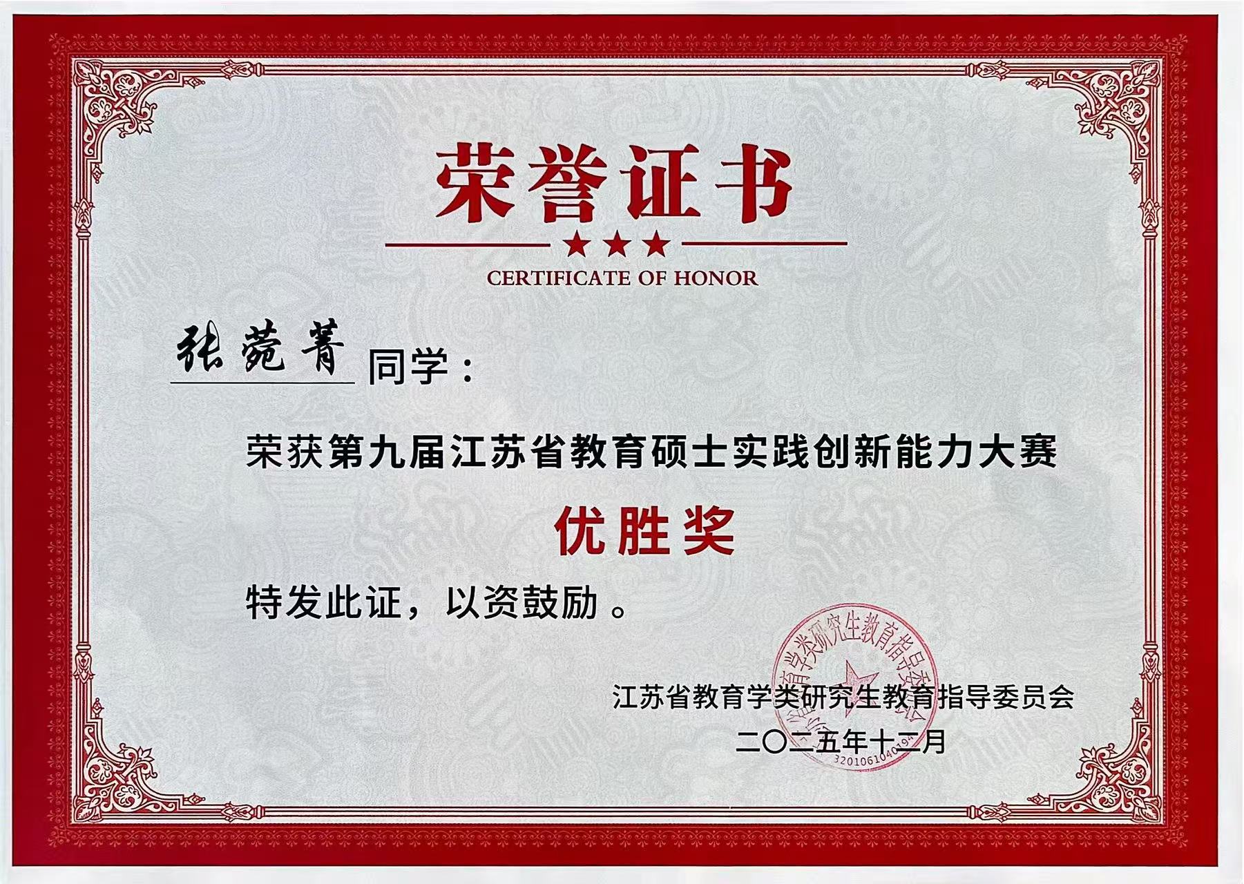 2025年12月5日-7日,由江苏省教育学类研究生教育指导委员会主办,南通大学承办的“第九届江苏省教育硕士实践创新能力大赛”在南通大学举行。Beat365官网研究生荣获二等奖2项,优胜奖3项。