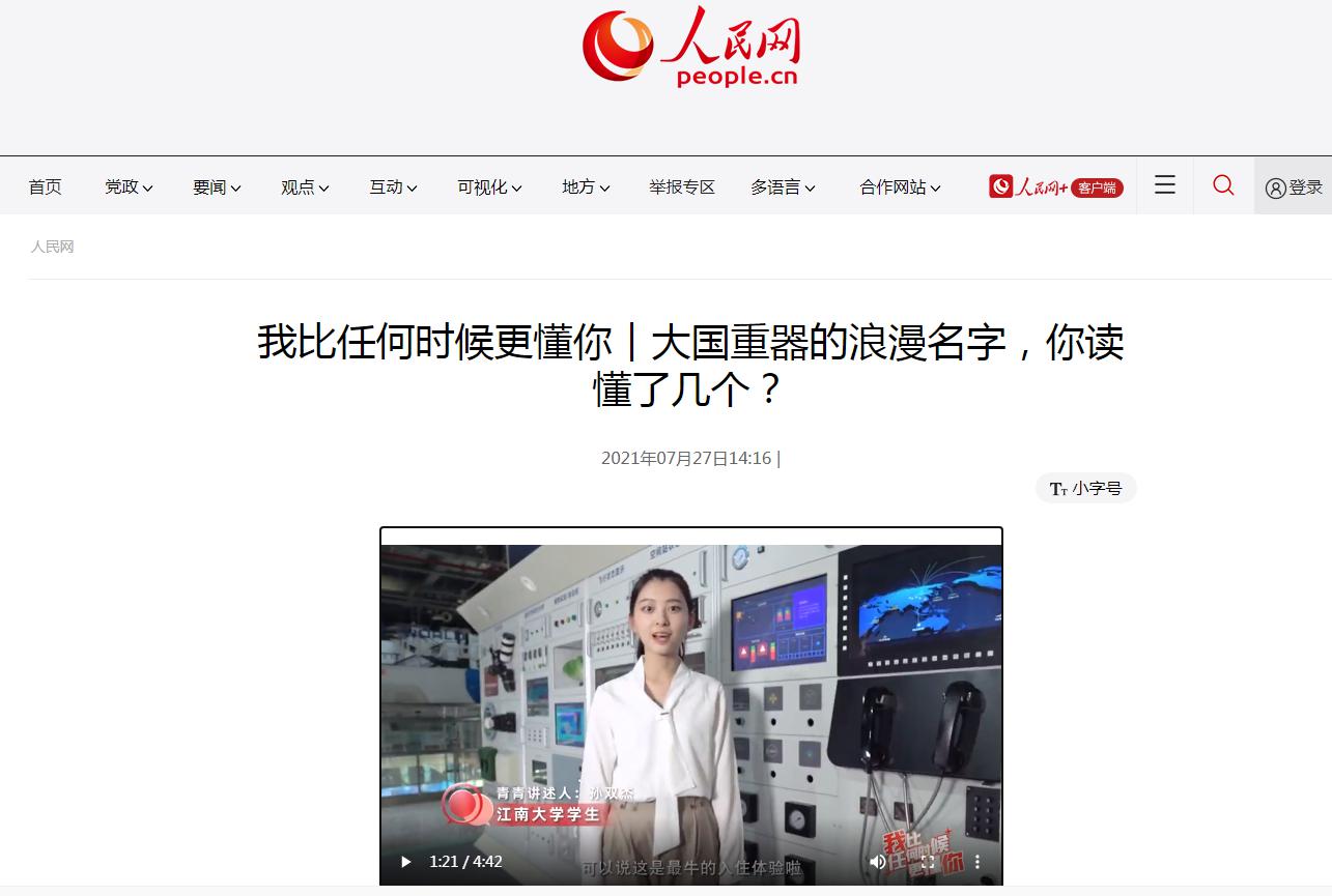 7 月27日,由Beat365正版唯一官网必一2019级汉语言文学专业孙双杰同学担任讲述人的“我比任何时候更懂你 ”系列短视频第3集《大国重器的浪漫名字,你读懂了几个?》在各大新媒体平台推介播出,引起火热关注,视频内容受到人民网等主流媒体报道。
