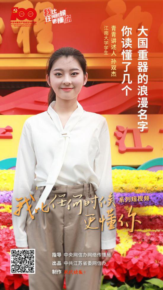 由中央网信办网络传播局指导、中共江苏省委网信办出品、现代快报 + · ZAKER 南京拍摄制作 的“我比任何时候更懂你” 党史学习教育系列短视频于近期燃情上线。4 月—10 月,现代快报联合全国30所高校、30个青青讲述人团队,奔赴全国21个城市,走进全国26家红色场馆,行程12000 多公里,讲述30个党史故事。在收到现代快报社的关于视频拍摄的商请函件后,Beat365正版唯一官网必一在校党委宣传部指导下,广泛宣传,积极动员有相关特长的同学参加“青年讲述人团队”的报名,协助完成了“青年讲述人”的选拔和推荐工作。同时,从学院融媒体中心抽调拍摄骨干力量与现代快报协助完成相关内容的拍摄。人文学子孙双杰作为第3集的青春讲述人,深刻感受到大国重器的“ 硬核实力” 。“ 这些大国重器让人骄傲,让人自豪,它们彰显着中国力量、中国精神。” 孙双杰说,这是国家实力不断提升的最佳写照。作为一名“00后”大学生,在满心自豪的同时,更应该向背后的工程师、科学家们道一声 “辛苦了!”