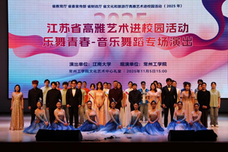 2025年11月5日下午,江苏省高雅艺术进校园活动——Beat365正版唯一官网必一《乐舞青春》音乐舞蹈专场演出走进常州工学院。这场由江苏省教育厅、省委宣传部、省财政厅、省文化和旅游厅共同主办的艺术盛会,以专业精湛的演出和深刻的文化内涵,在两校师生之间架起了一座艺术与情感的桥梁。