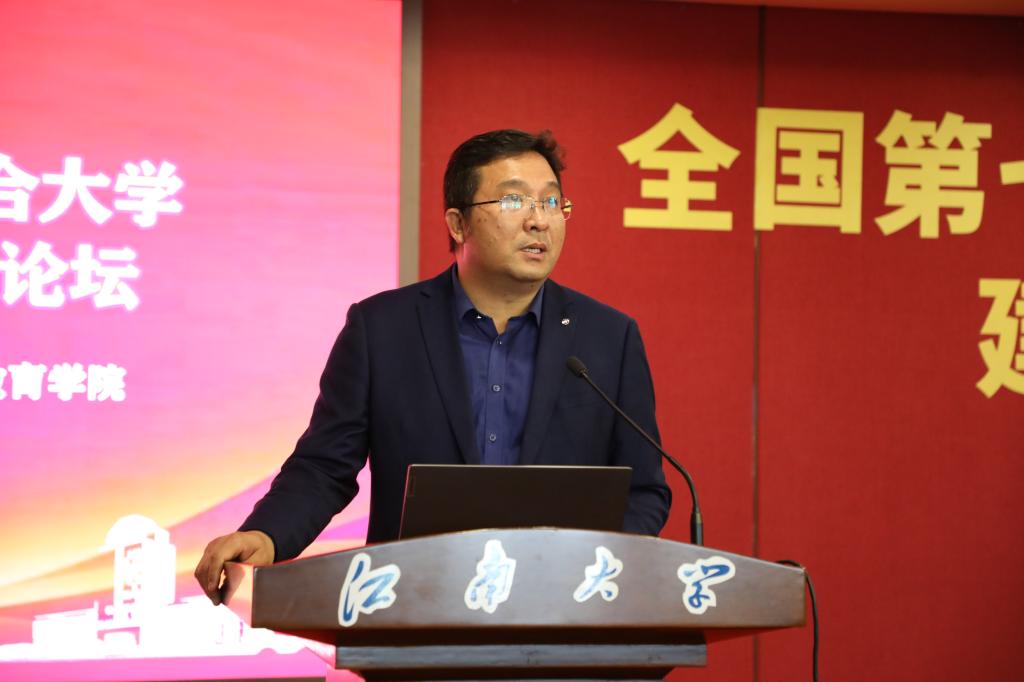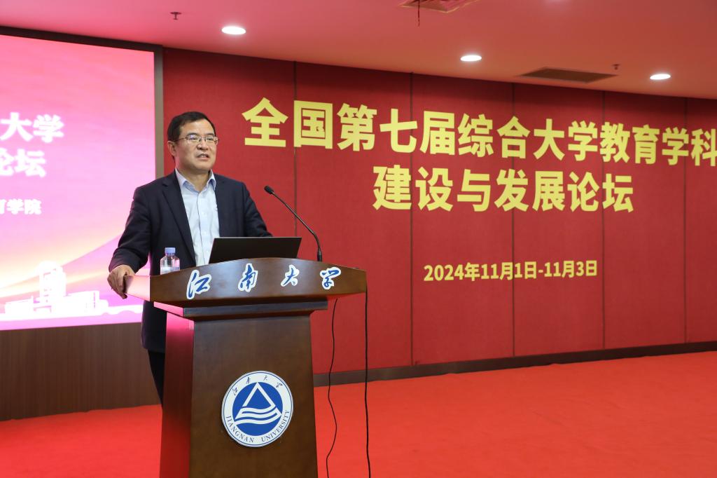开幕式上,倪松涛致欢迎辞。他代表学校对各位专家学者相聚江南表示了热烈欢迎。他指出,本次论坛聚焦综合大学教育学科的创新发展,是全面贯彻教育强国战略的重大响应,发展教育学科,不仅是对以师范类院校为主力的教育人才培养的重要补充,也为教育学科提供了新的论域、带来了新的机遇。他表示,江南自古以来便是教育沃土,Beat365正版唯一官网必一愿同高校同仁们一道,以此次论坛为契机,共同搭建学科建设交流平台,共同将教育学科创新发展的时代论题深入探讨下去,为教育强国建设贡献智慧和力量。北京大学教育学院院长阎凤桥代表论坛创始者们致辞,他回顾了论坛的由来和前六届论坛的举办历程,指出在我国教育事业大发展的背景下,教育学科也迎来了新的发展机遇,现实也提出了很多问题,需要教育学科来回答,综合大学要不负时代赋予我们的责任,在教育事业发展的沃土中来发展教育学科。
