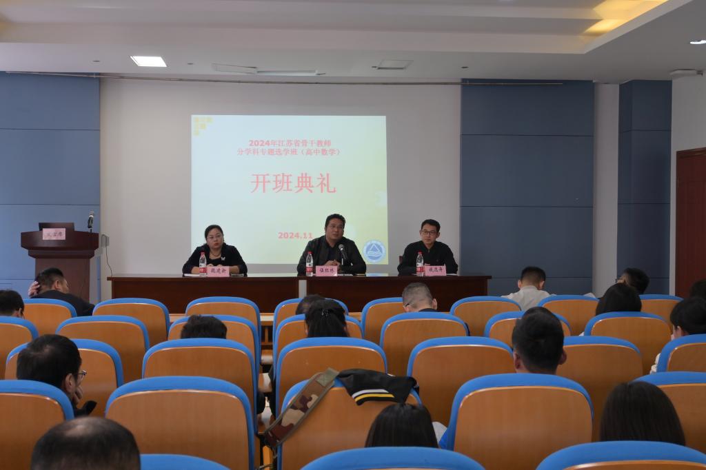 2024年11月4日,由江苏省教师培训中心主办,Beat365正版唯一官网必一校长教师培训中心承办的“2024年江苏省高中骨干教师分学科专题选学—高中数学”项目在Beat365官网举行了开班仪式。Beat365正版唯一官网必一教育学院院长伍红林、院长助理钱逸舟、校长教师培训中心主任魏建新以及来自江苏省内的50位高中数学一线教师参加了开班仪式。