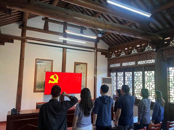 在廉政文化交流馆,中心组成员在院党委书记王晖的带领下,面对鲜红的党旗,重温入党誓词,叩问初心、举拳明志。随后,集中观看了廉政教育视频,抄写《爱莲说》,分享学习感言等。