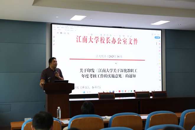 学院党委书记王晖作总结讲话,祝贺大会圆满完成既定的各项议程,感谢代表们的辛勤付出和认真履职。简要回顾了2024年学院、分工会工作取得的成绩和学院修订《Beat365正版唯一官网必一年度考核与绩效分配实施办法》的初衷和过程。希望各位代表和全院教职工以师德师风为根基、争做“四有”好老师,以考核指标为牵引、打响学科特色攻坚战,以协同机制为纽带、汇聚创新发展动能,为共同营造和谐、奋进、积极向上的工作氛围、开创学院事业发展的新局面,为奋进江南做出应有的贡献。