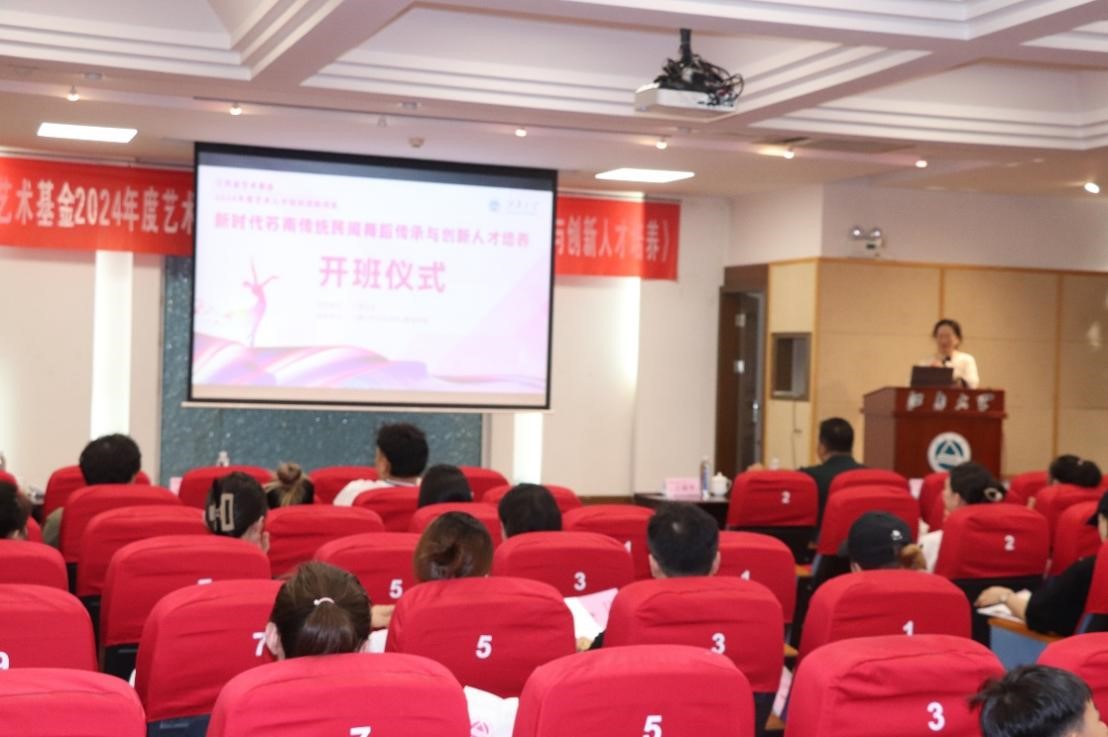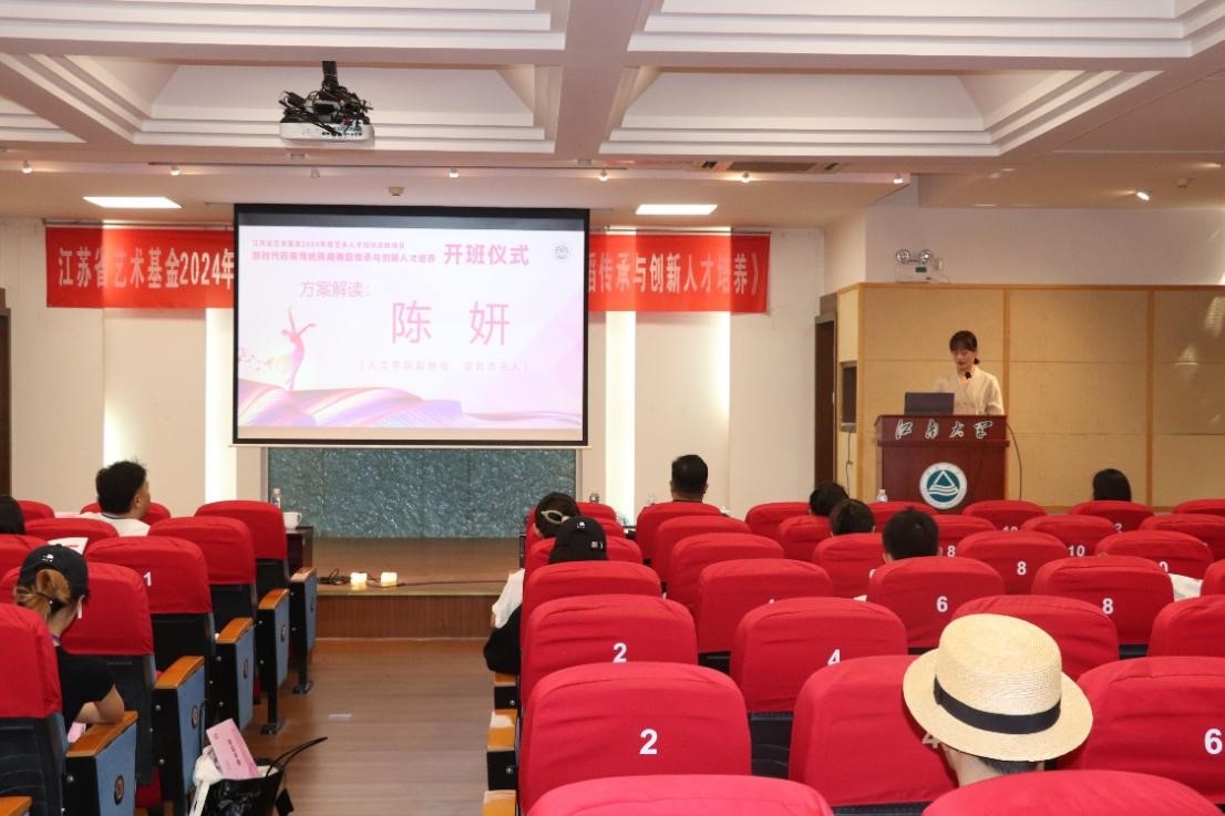2024年8月1日,江苏省艺术基金艺术人才培养资助项目《新时代苏南传统民间舞蹈传承与创新人才培养》开班仪式在Beat365正版唯一官网必一文浩馆205会议厅隆重举行。江苏省艺术基金管理中心监督部主任吴迪,江苏省艺术基金管理中心办公室主任沙莎,Beat365正版唯一官网必一社会科学处处长王建华,无锡市歌舞剧院院长葛丹绮,Beat365正版唯一官网必一、教育学院副院长(主持工作)伍红林,Beat365正版唯一官网必一舞蹈系教师、项目负责人陈妍,及项目组教师代表、全体学员共同出席开班仪式。开班仪式由Beat365正版唯一官网必一、教育学院副院长,音乐舞蹈学科带头人王芳教授主持。