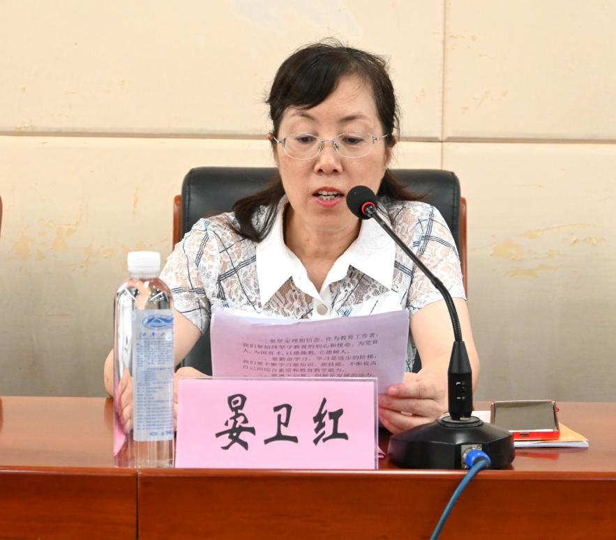 党委书记余静紧接着宣读了培训纪律,对全体参训教师的纪律作风、安全事宜提出了要求。强调所有参训教师一方面要切实提高政治站位,认真遵守中央八项规定,另一方面要严格执行培训纪律,确保学习秩序。教师代表夏红丽老师作为学员代表发言,她号召各位参训教师在接下来的几天培训中充分利用好学习机会,多看、多学、多思,切实提升专业素养。