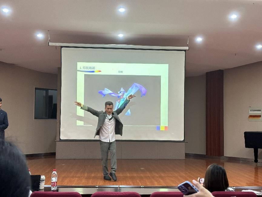 6月25日上午,金教授为Beat365官网师生进行了题为:“韩国创作舞蹈的发展历程——以金龙喆舞剧《夜镜台》为例”的讲座。讲座中,金龙喆教授分别从传统舞蹈、新舞蹈、创作舞蹈和个人研究,四个方面向师生们展示了韩国创作舞蹈的发展历程。此外,金教授通过现场表演韩国不同舞蹈形式的舞段,使在场师生对韩国传统舞蹈、新舞蹈和创作舞蹈各自的舞蹈特色一目了然,从而能够清晰地区别三种舞蹈在表演上的异同。金教授优美、细腻的表演也征服了在场师生,他精湛的舞艺令人惊叹。最后,金教授以自己创作的舞剧《夜镜台》为例,对如何将韩国传统舞蹈中的元素运用于创作舞蹈中进行分析。金教授是韩国创作舞蹈的第三代编导中的代表人物之一,在1992年成立了自己的舞团(金龙喆舞蹈团),致力于韩国舞路的创作化,艺术化和大众化,探寻亚洲文化与韩国民族精神的融合。他的舞剧《夜镜台》刻画了韩国现代人们的生活和形象,对生命轮回进行了超越“未来”的传统意义的再闸释。