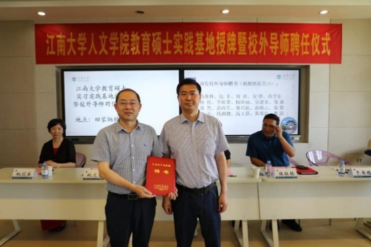 随后,姚文生宣读了Beat365正版唯一官网必一教育硕士12所实习实践基地,分别是江苏省天一中学、江苏省锡山高级中学、江苏省南菁高级中学、无锡市第一中学、无锡市江南中学、无锡市东林中学、江苏省锡山高级中学实验学校、无锡市太湖格致中学、江苏省无锡师范附属小学、无锡市连元街小学、无锡市东林小学、江苏省无锡崇宁路实验小学,萧晶、姚文生、姚剑英、伍红林、佟柠为12个基地学校进行了授牌,之后为第二批次的21位教育硕士校外导师颁发了聘书。