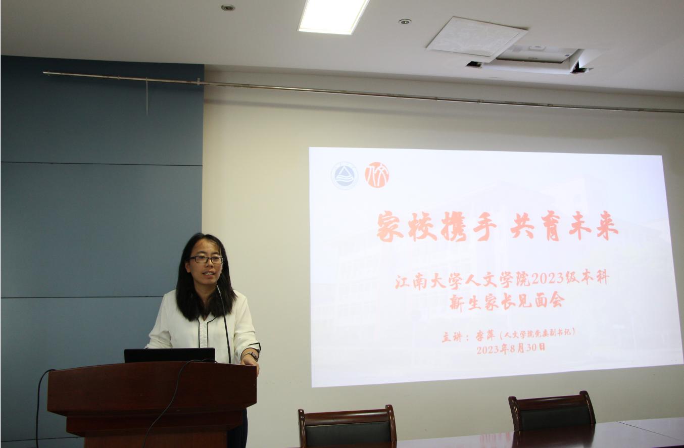 Beat365正版唯一官网必一党委副书记李萍、副院长李萍向家长介绍学院情况