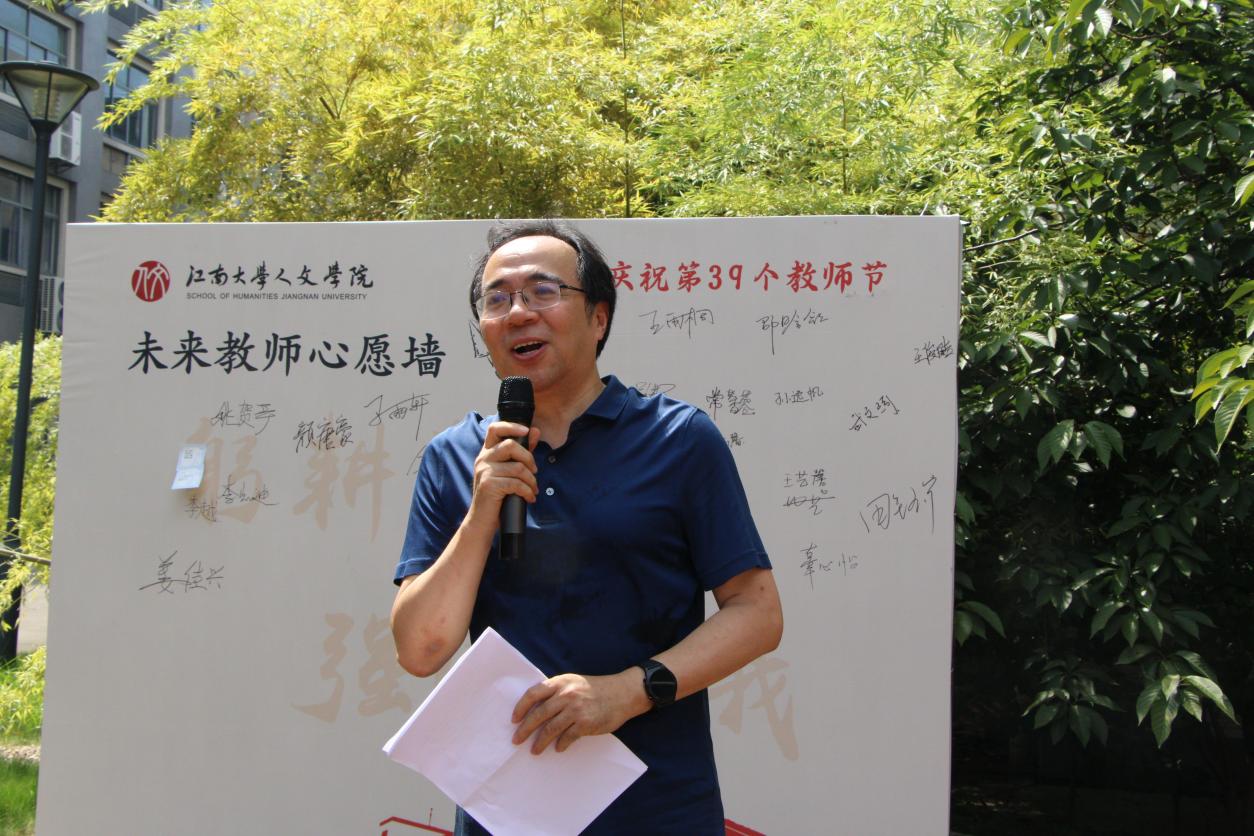 活动最后,杨晖教授为在场师生们讲授“师德教育第一课”,他勉励师范生们要努力成为优秀的人民教师,要有梦想、懂求索、重健康。他强调,师范生们要做有“师德”的教师,“师德”内涵“三心”“四有”“六要”的深刻内容。“三心”即赤诚之心、奉献之心、仁爱之心;“四有”即有理想信念、有道德情操、有扎实学识、有仁爱之心;“六要”即政治要强、情怀要深、思维要新、视野要广、自律要严、人格要正。杨晖通过丰富的典籍故事给在场的师生们上了一堂精彩的师德课、文化课、人生课。同学们反响热烈,现场掌声连连。师范生们纷纷表示宣誓活动使自己的内心触动很深,深切感受到人民教师职业的光荣与自豪,更加坚定了未来投身于教育事业的信念。