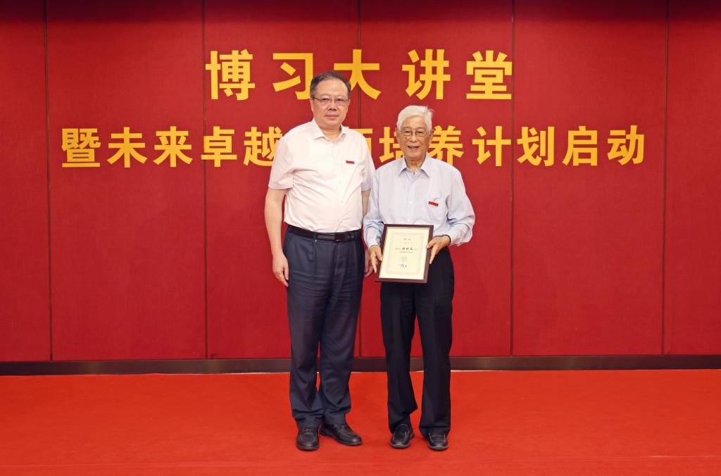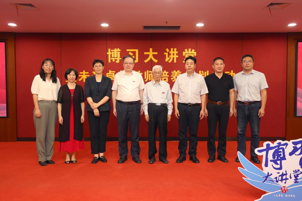 最后,顾明远先生主讲“博习大讲堂”第一讲,他以《未来卓越教师的关键素养》为题,结合习近平总书记对于教育的重要论述、自己从事教育七十五载的经历以及参加全国优秀教师代表座谈会、学习习近平总书记致信全国优秀教师代表讲话精神的感悟,分析了当代中国教育的基本情况、面临挑战和发展方向,阐述了“没有爱就没有教育、没有兴趣就没有学习、教书育人在细微处、学生成长在活动中”等教师的四条教育信条。顾先生认为从“年轻教师”成长为“优秀教师”需要经过五项修炼,即“愿意当老师”“不断锤炼本领”“终身学习能力”“创新教学理念”“教书育人的收获”。顾明远希望全体教师和师范同学能够弘扬教育家精神,牢记为党育人、为国育才的初心使命,树立“躬耕教坛、强国有我”的志向和抱负,掌握教育规律,提升自身修养,精进教学技能,努力成长成为新时代教育的“大先生”。