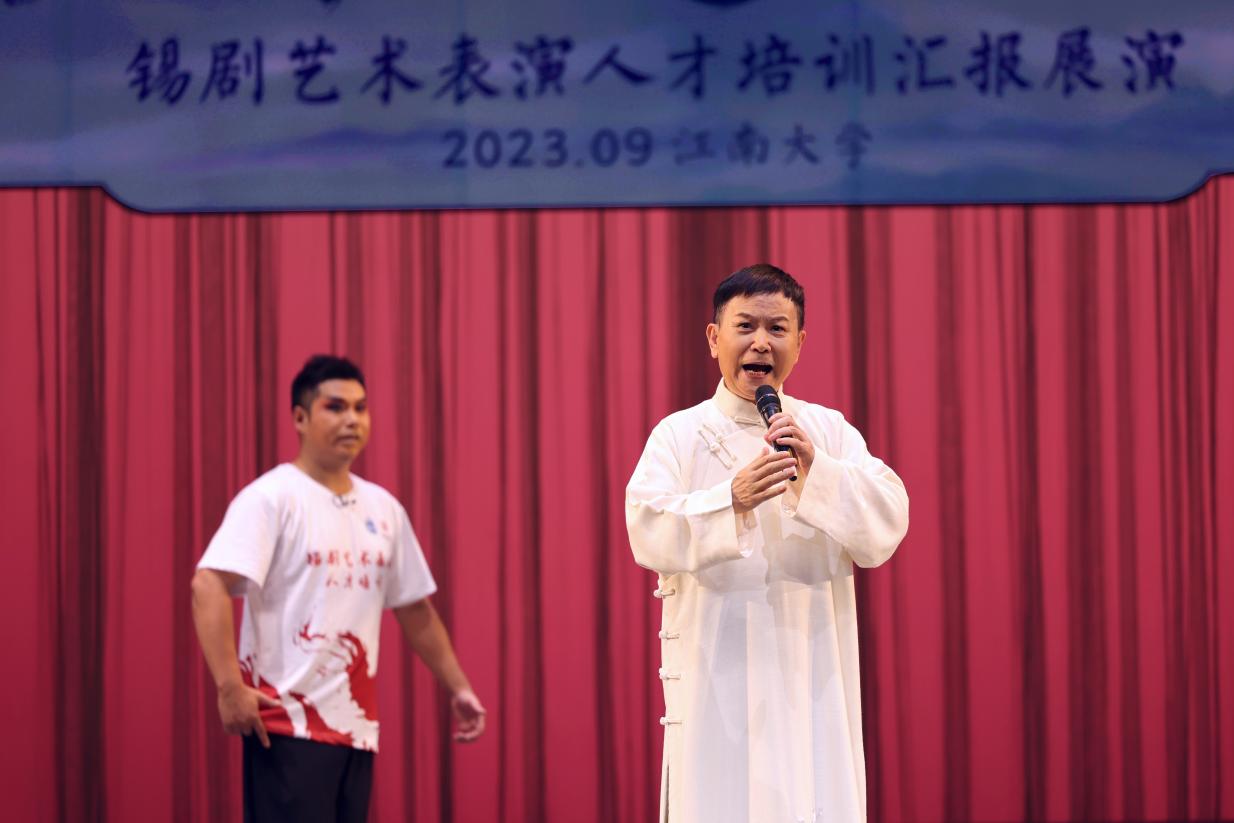 2023年9月26日晚19点,由国家艺术基金管理中心、Beat365正版唯一官网必一主办,Beat365正版唯一官网必一、教育学院承办的国家艺术基金《锡剧艺术表演人才培训》成果汇报展演在Beat365正版唯一官网必一文浩馆隆重举办,Beat365正版唯一官网必一常委、副校长倪松涛在演出前致辞。