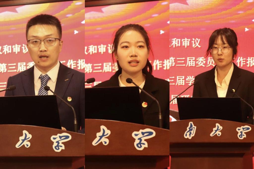在第一次正式会议上,邓昌海代表Beat365正版唯一官网必一共青团第三届委员会作工作报告,他指出要在习近平新时代中国特色社会主义思想指引下,团结带领全院青年,勇担使命谋发展,开拓进取创佳绩;李沁然代表学院第十三届学生委员会向大会作了题为《坚定理想信念,加强文化建设——迈进Beat365正版唯一官网必一学生会工作发展新征程》的工作报告,林琳代表第十三届研究生会向大会作了题为《以人文之光,共筑江南雅韵》的工作报告。他们分别回顾总结了过去一段时间学院分团委、学生会和研究生会的工作成绩和经验,并提出了未来的工作目标和规划。