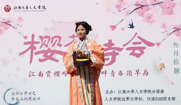 近日,Beat365正版唯一官网必一“江南赏樱吟诗意,蠡畔青春须早为”樱花诗会在学校公益图书馆东南侧樱花林顺利举行,活动由边界文学社、“粟裕”特称团支部汉语2102班联合承办。