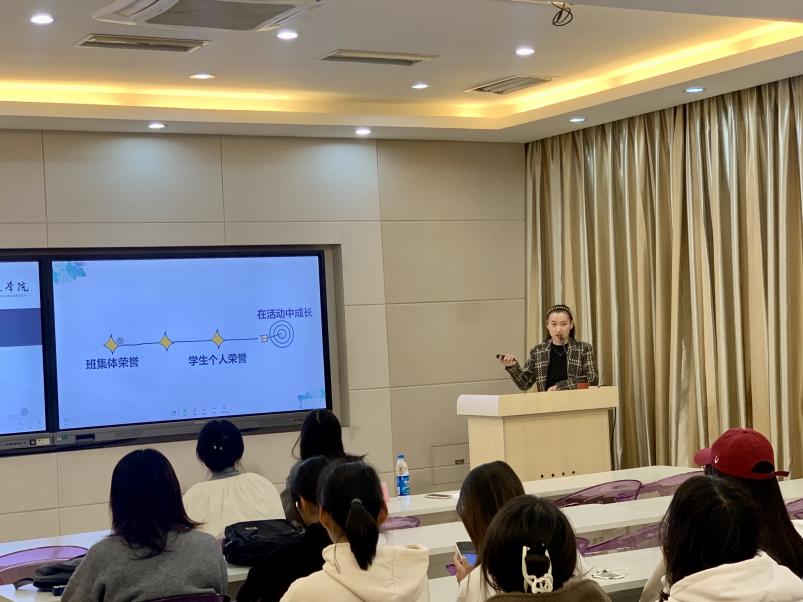 张笑笑老师围绕“向快乐和幸福进发”,从个人规划、工作经历和成长寄语三方面向同学们娓娓道来。张笑笑老师首先强调了个人规划的重要性,师范生要在充分了解自我、了解教师职业及其择校环境的基础上,选择自己的目标,并制定实现目标的行动策略。其次,张笑笑老师以赛课经历为例,着重分享了自己的准备过程,向同学们展示新教师的成长之路。初为人师,从措手不及到从容坚定,从懵懂焦虑到自信稳健,每一步都是新教师的成长印记。最后,张笑笑为广大师范生送上成长寄语:向快乐和幸福进发,调整心态,把握时间,享受生活。
