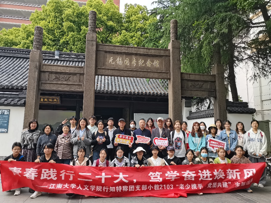 本次“老少携手 党团共建”活动以党的二十大精神为指引,旨在进一步加深同学们对无锡的历史文化的认识,增强党团之间的联系,推动退休老党员持续发挥引领作用,引领学生成为立大志、明大德、成大才、担大任新时代青年。