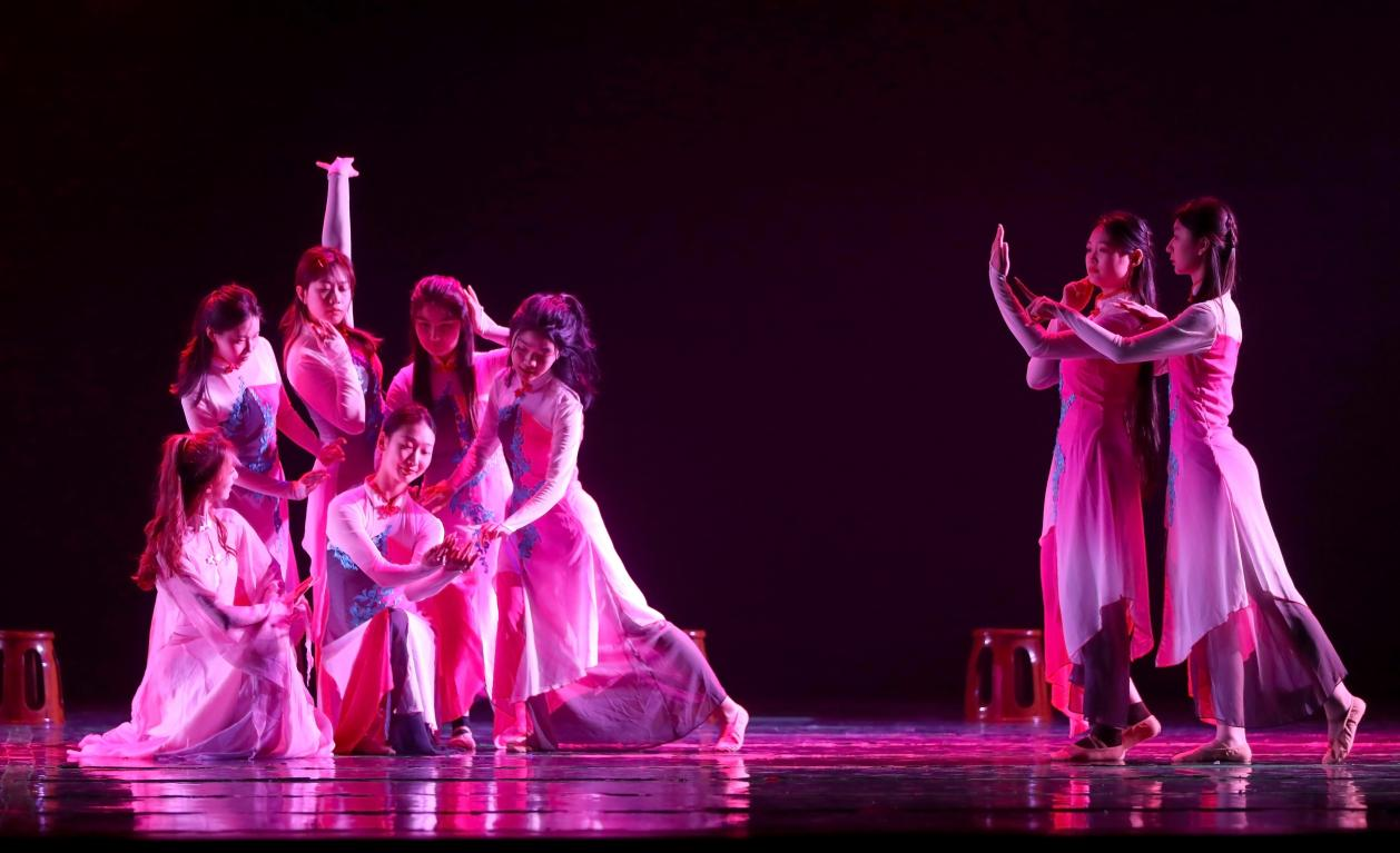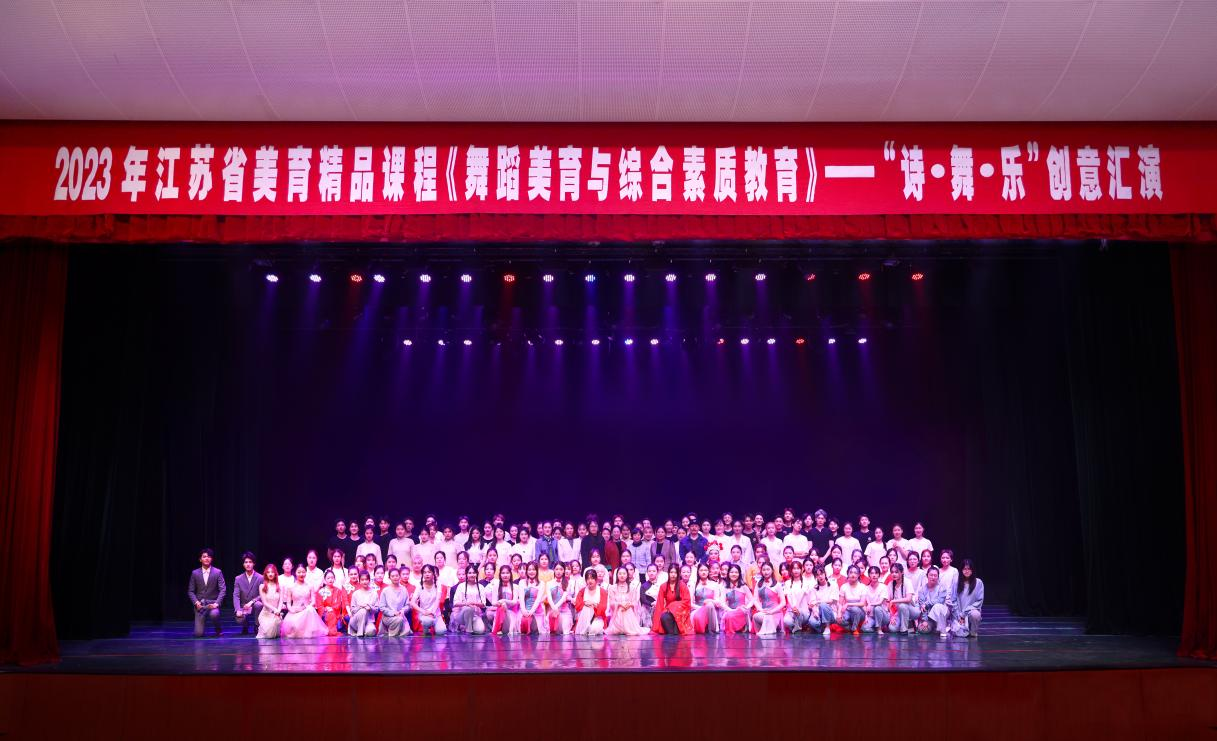 2023年4月26日晚19点,江苏省美育精品建设课程《舞蹈美育与综合素质教育》“诗•舞•乐”创意汇演在Beat365正版唯一官网必一文浩馆圆满完成!