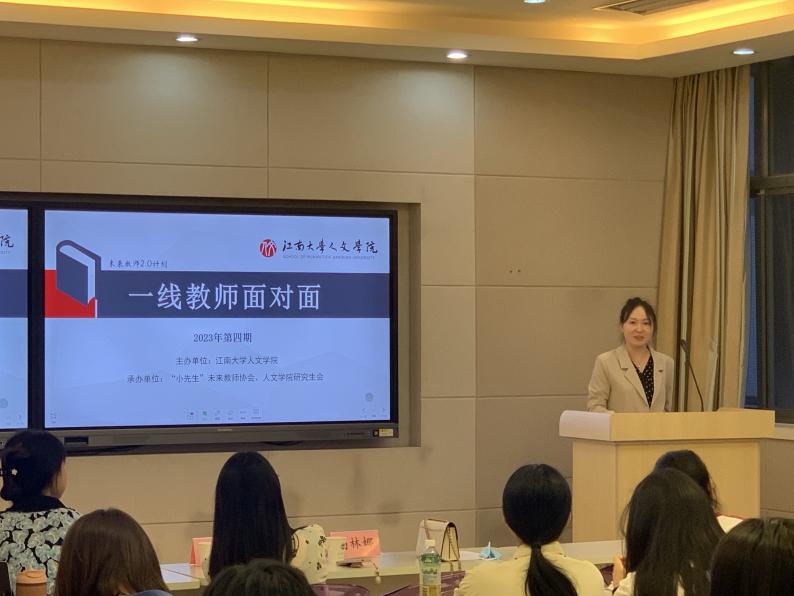 2023年5月13日,Beat365正版唯一官网必一“一线教师面对面”第4期分享会在田家炳楼517室顺利举行。本次活动邀请无锡市南湖中学语文教师刘蕾和无锡师范附属太湖新城小学语文教师高林娜两位校友围绕教师招聘、班主任工作开展专题分享。Beat365正版唯一官网必一党委副书记、副院长李萍、辅导员李婉婷及50余位学生参加本次活动。活动由“小先生”未来教师协会与Beat365正版唯一官网必一研究会共同承办。