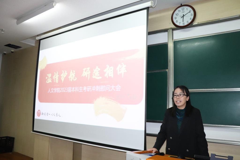首先,李萍老师充分肯定了同学们勤奋学习、持之以恒的精神,并鼓励大家继续坚持,为自己的梦想努力拼搏。李萍老师从四个方面给考研学生提出了建议:一是增强信心,在最后的冲刺阶段,要按自己的计划进行;二是要利用好课本知识、考试真题等重要复习资料,巩固提升;三是要劳逸结合,学会积极调适,高效复习;四是要牢记学院永远是大家的港湾,有困难及时联系学院,联系辅导员,学院老师们一定会为大家提供相关服务保障。