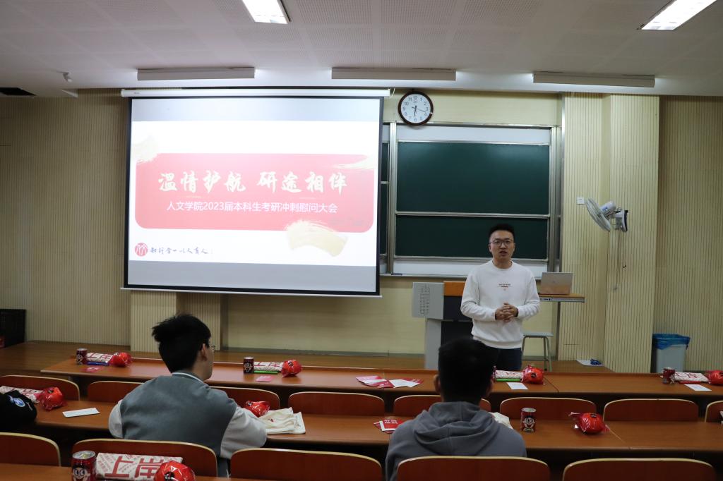 10月26日晚上,Beat365正版唯一官网必一2023届本科生考研冲刺慰问大会于一教1B103顺利举行。Beat365正版唯一官网必一党委副书记、副院长李萍,辅导员邓昌海、兼职辅导员徐丹杨和即将参加考研的2023届本科学生共同参加了本次会议。会议活动由年级辅导员赵将老师主持。