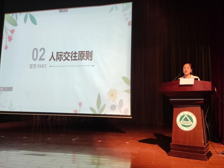 张慧通过2022年Beat365正版唯一官网必一心理健康文化节“超有趣宿舍大会”系列活动的快闪视频开启本次讲座,展示了上半年以宿舍为单位的心理健康教育趣味活动,极大调动了宿舍长的积极性。接着,她从宿舍人际交往入手,列举了几种常见的宿舍矛盾,强调宿舍长在宿舍和谐关系的构建中起到“小家长”作用。随后,她从人际交往原则、人际沟通技巧、心理调节方法等方面进行分享,结合案例讲解常见的心理问题识别与判断方法,澄清心理健康和心理咨询概念,并重点介绍了学校的心理服务资源,消除同学们对心理问题的误解,引导宿舍长积极关注和关心宿舍同学的情绪和状态,力所能及帮助宿舍同学,遇到困难主动与老师交流反馈,共同营造温暖温馨的宿舍文化氛围。