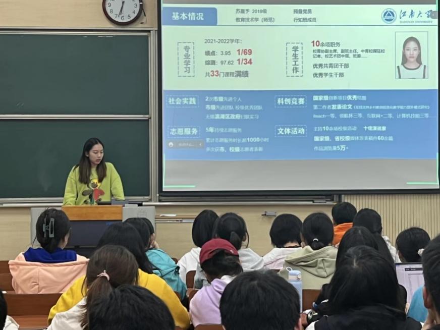 10月31日,Beat365正版唯一官网必一第20期真人图书馆——“学霸们的国奖秘籍”国奖经验分享会在第一教学楼顺利举行。Beat365正版唯一官网必一本年度9位国家奖学金获得者分别向相应专业的22级新同学做经验分享报告,本次活动由学生事务中心承办,Beat365正版唯一官网必一2022级全体本科新生参加。